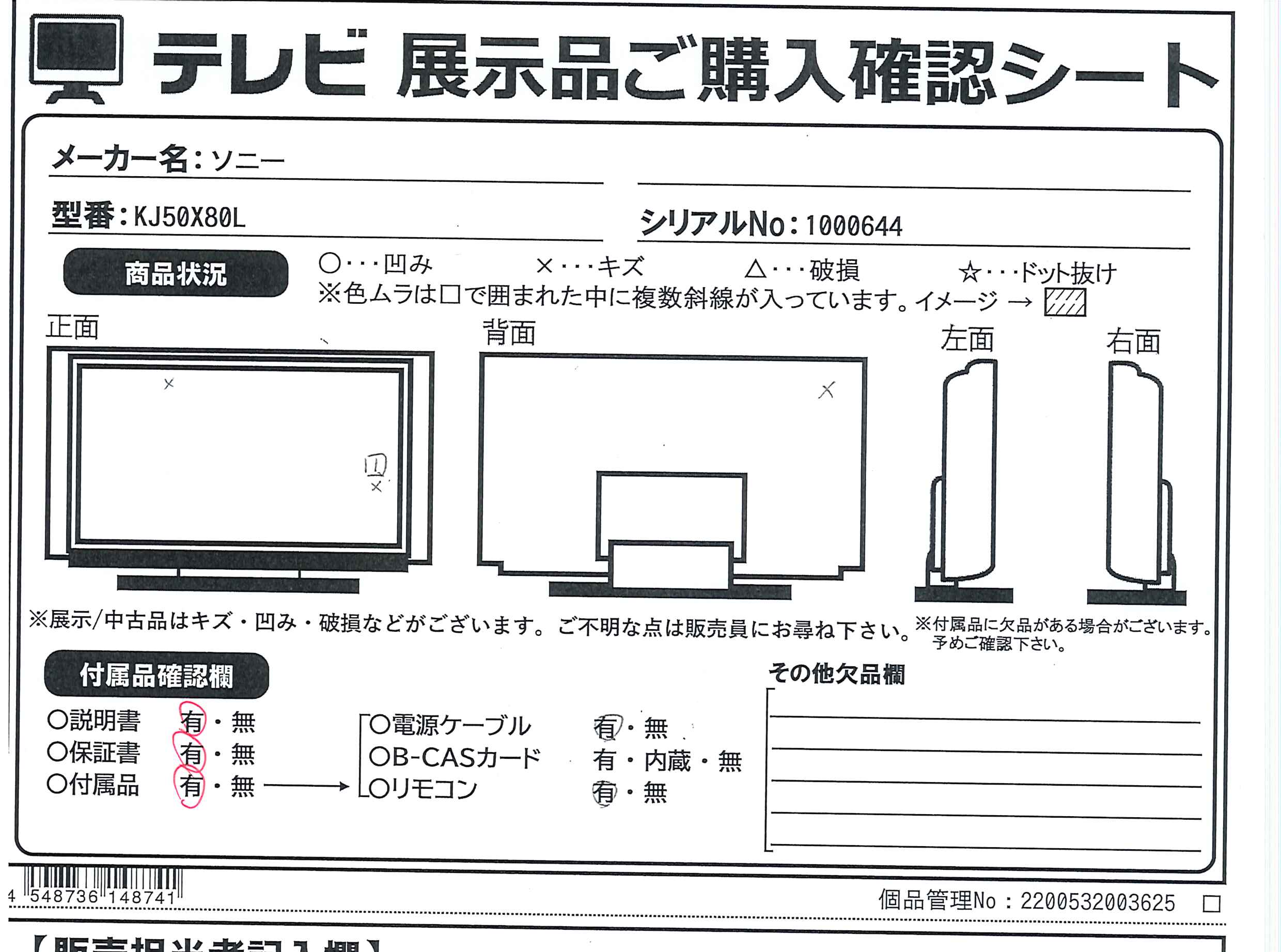 中古商品ランクについて 付属品・商品状態について 〔付属品〕説明書、組み立て/設置ガイド、Google TV セットアップガイド、製品登録のおすすめ、リモコン、リモコン用乾電池×2、スペーサー(VS)×4、ケーブルカバー(CL)×2、電源ケーブル、スタンド(SB1)、スタンド(SB2)、転倒防止用バンド一式(FB)
