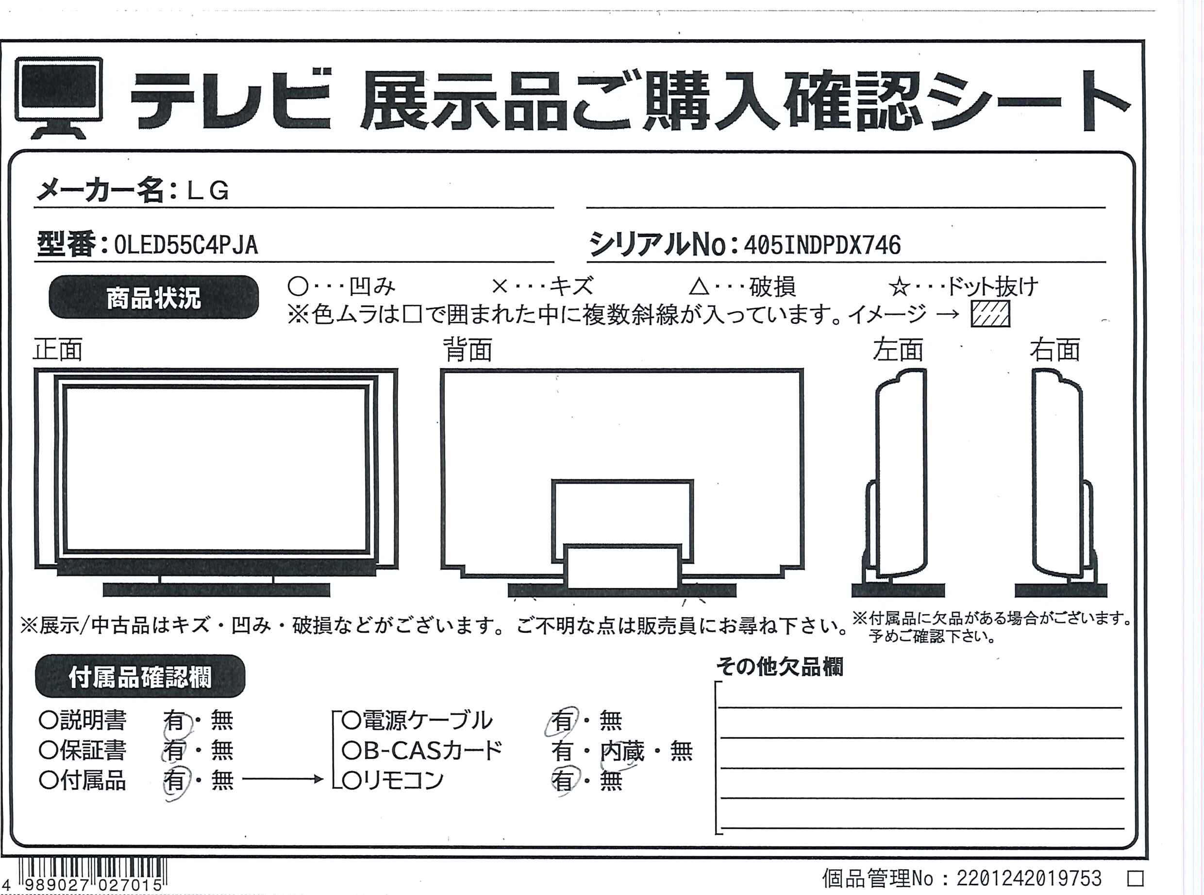 中古商品ランクについて 付属品・商品状態について 〔付属品〕説明書、ガイド、マジックリモコン、乾電池×2、スタンド一式、スタンドカバー、転倒防止バンド一式、IRブラスター、スタンドケーブルホルダー、ヘッドケーブルホルダー