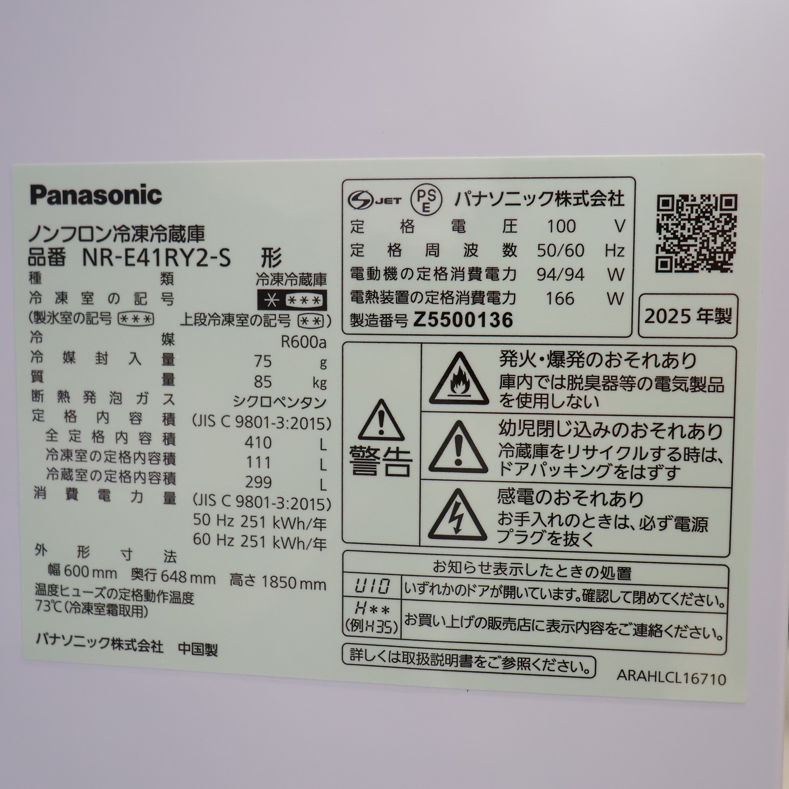 〔展示品〕 冷蔵庫 RYタイプ シルバー NR-E41RY2-S [幅60cm /410L /5ドア /右開きタイプ /2025年]