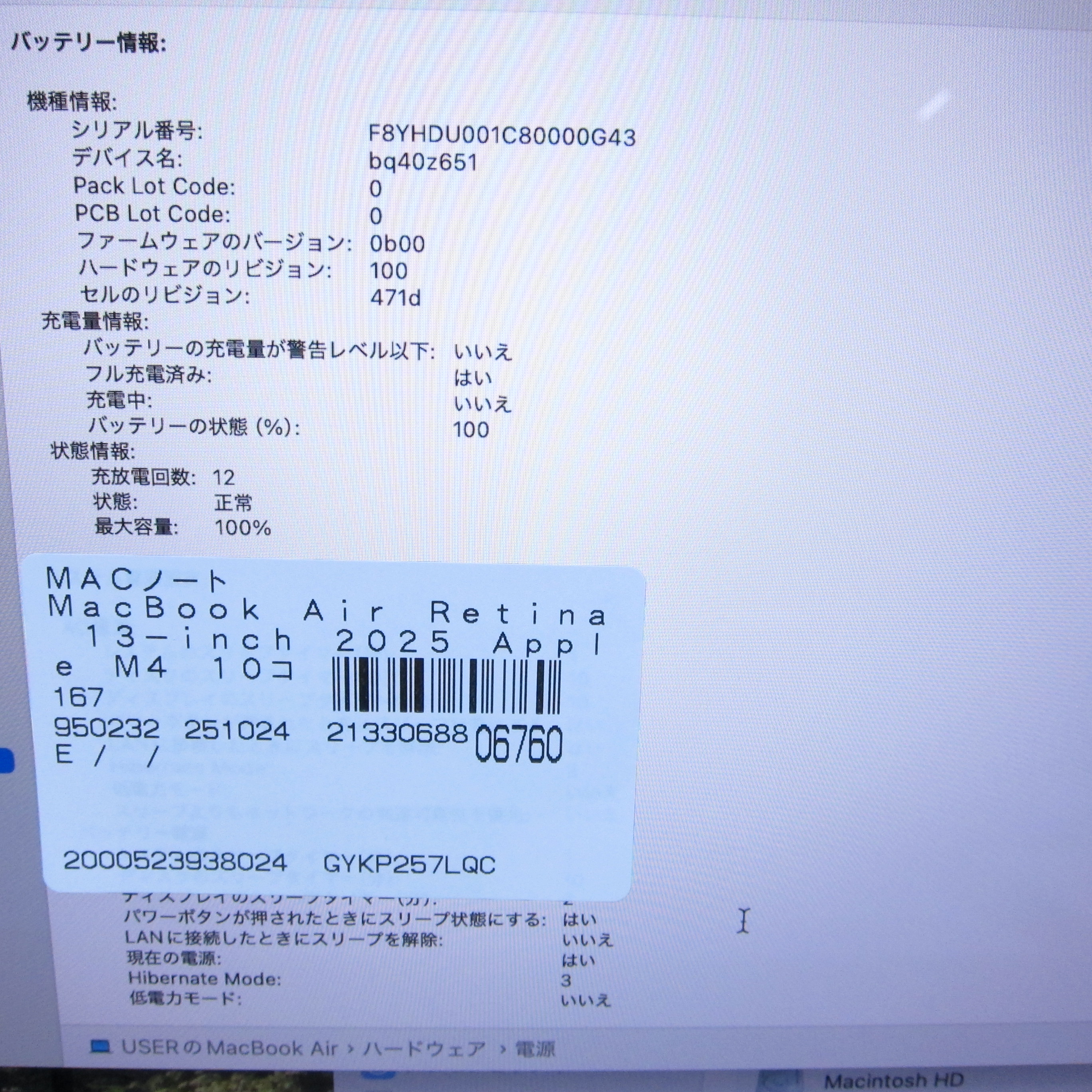 〔中古品〕 MacBook Air 13.6-inch Early-2025 MC6T4J/A Apple M4 10コアCPU_10コアGPU 16GB SSD256GB スカイブルー 〔15.7 Sequoia〕 [グラフィック:オンボード/USキーボード]