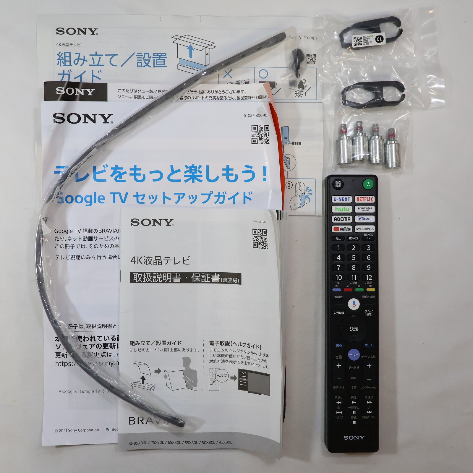 中古商品ランクについて 付属品・商品状態について 〔付属品〕取扱説明書、組み立て/設置ガイド、Google TV セットアップガイド、製品登録のおすすめ、リモコン、スペーサー(VS)×4、ケーブルカバー(CL)×2、スタンド(SB1)、スタンド(SB2)、転倒防止用ベルト一式(FB)