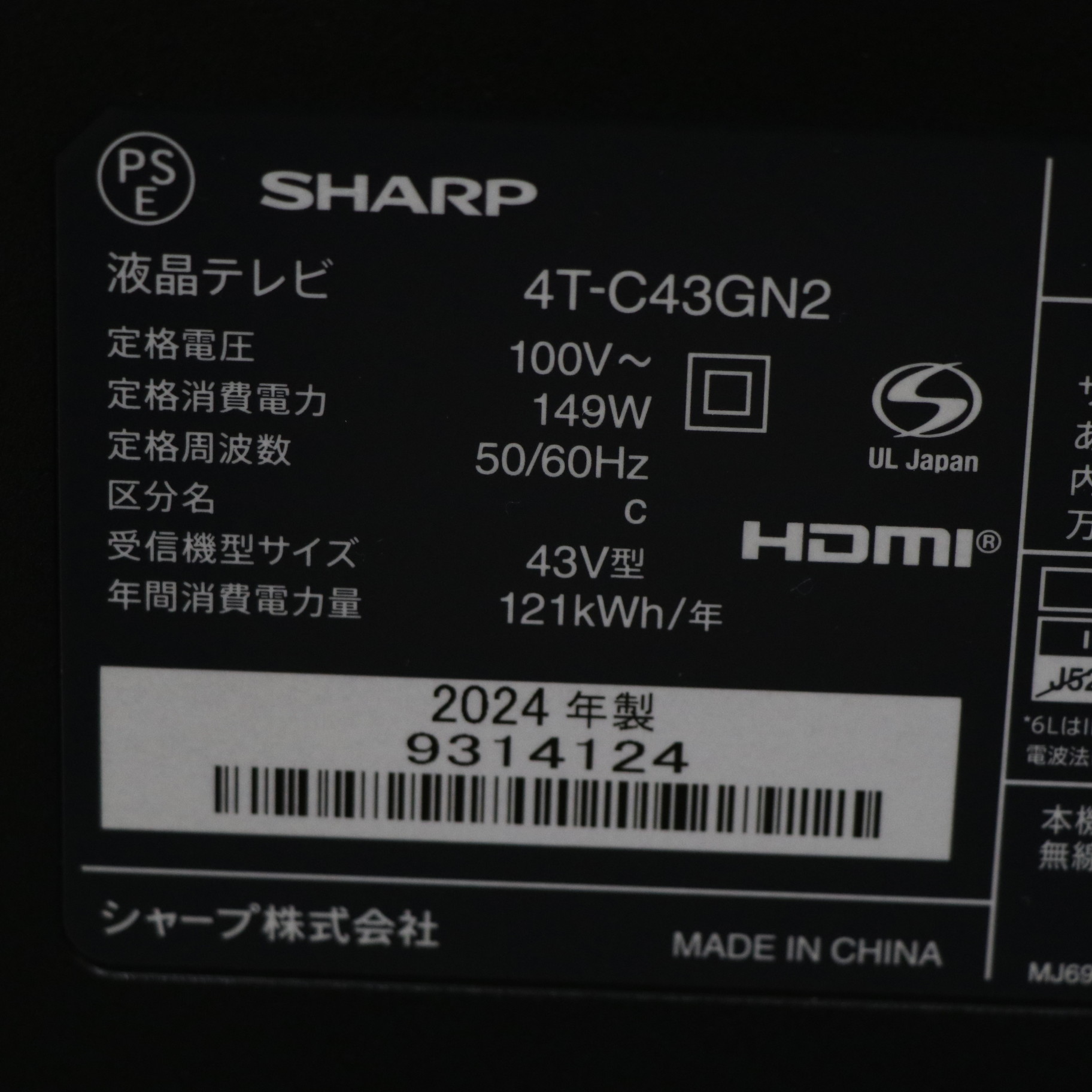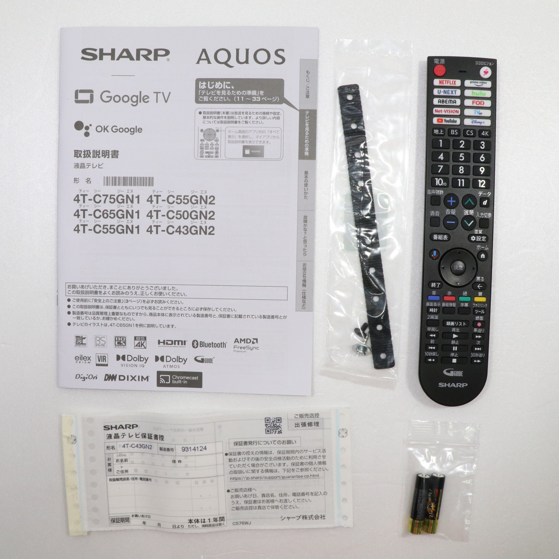 〔展示品〕 液晶テレビ AQUOS(アクオス) ブラック 4T-C43GN2 [43V型 /Bluetooth対応 /4K対応 /BS・CS 4Kチューナー内蔵 /YouTube対応]