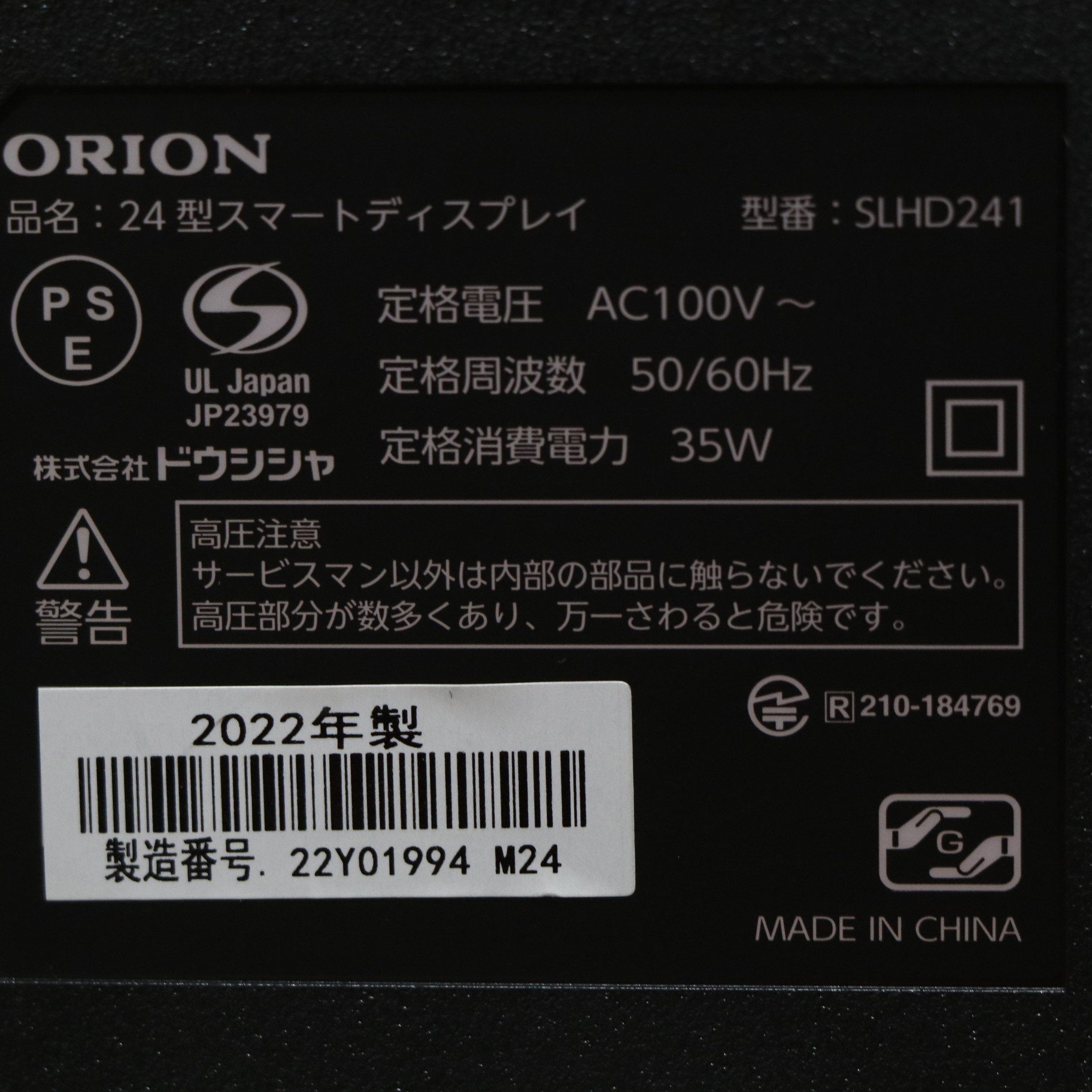 商品名 〔展示品〕 チューナーレステレビ Android搭載 SMART TV -Tunerless- SLHD241 [24V型 /Bluetooth対応 /ハイビジョン /チューナーレス /YouTube対応]