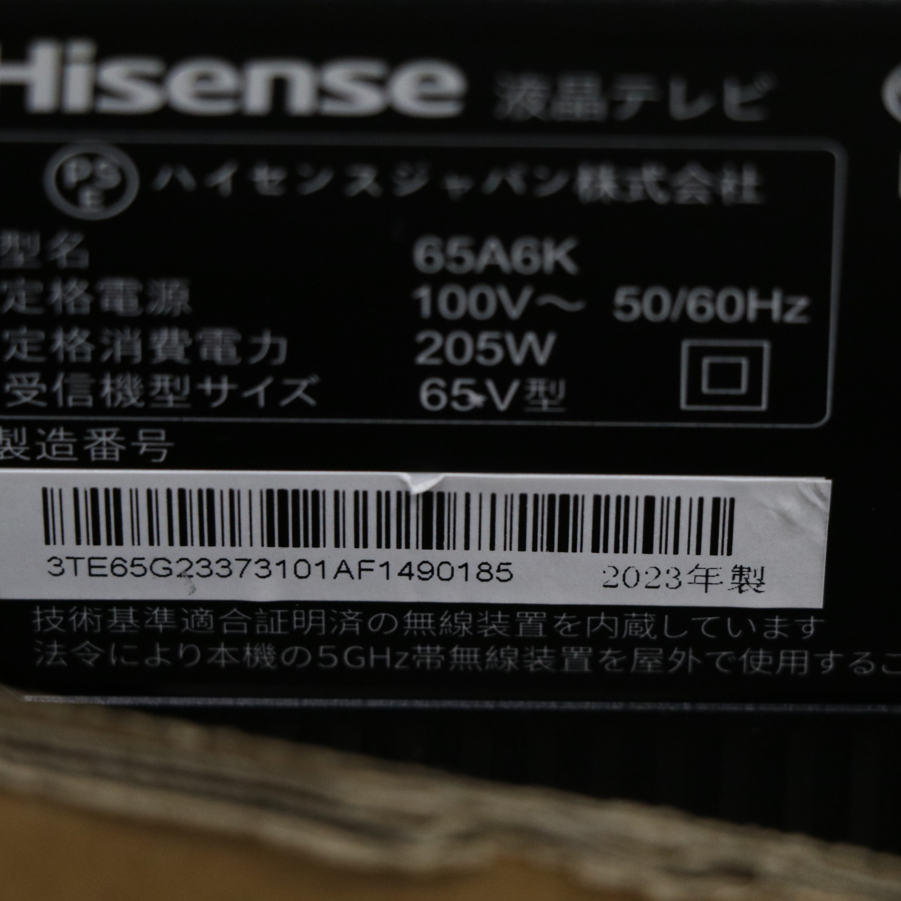 〔展示品〕 液晶テレビ 65A6K [65V型 /Bluetooth対応 /4K対応 /BS・CS 4Kチューナー内蔵 /YouTube対応]