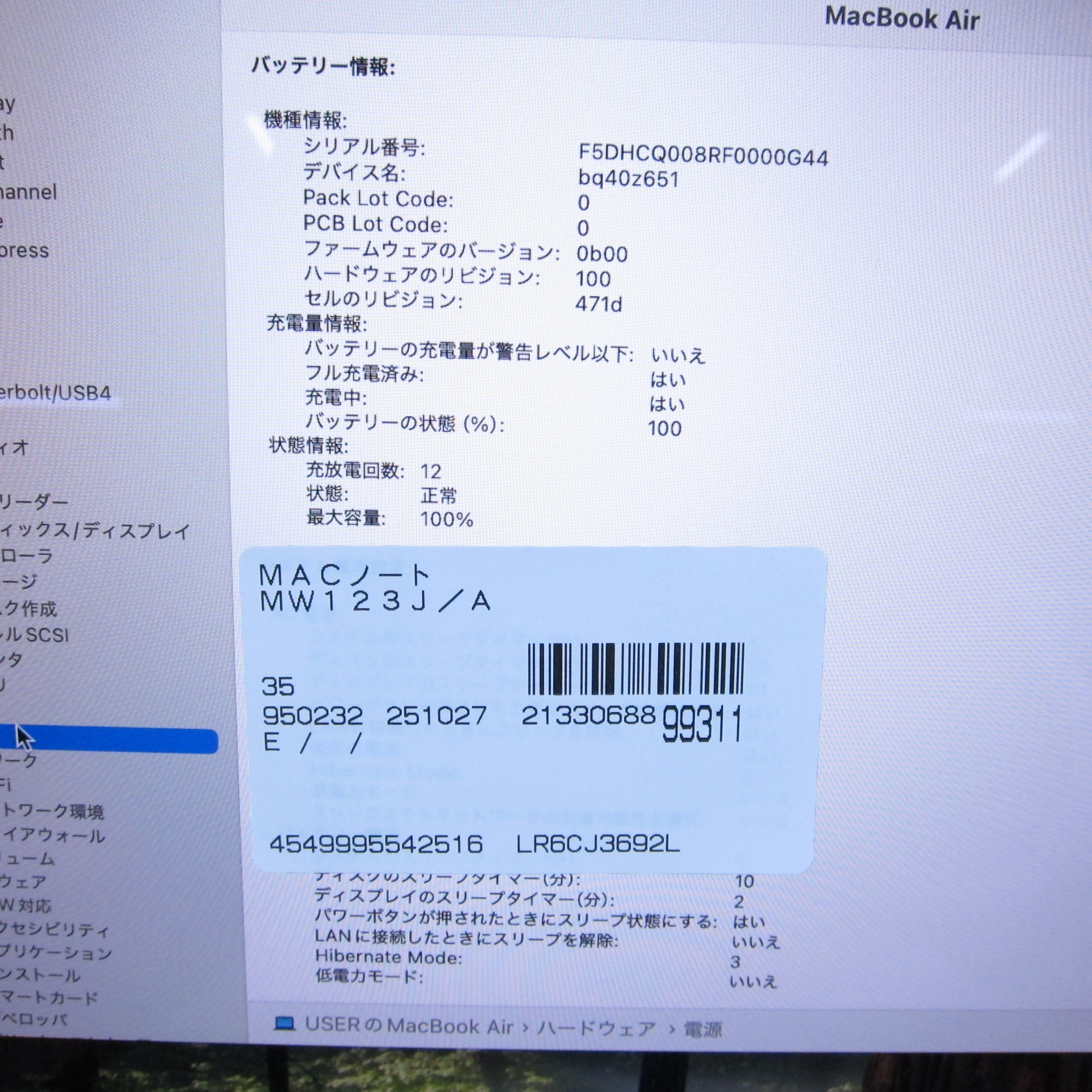 型番 MW123JA