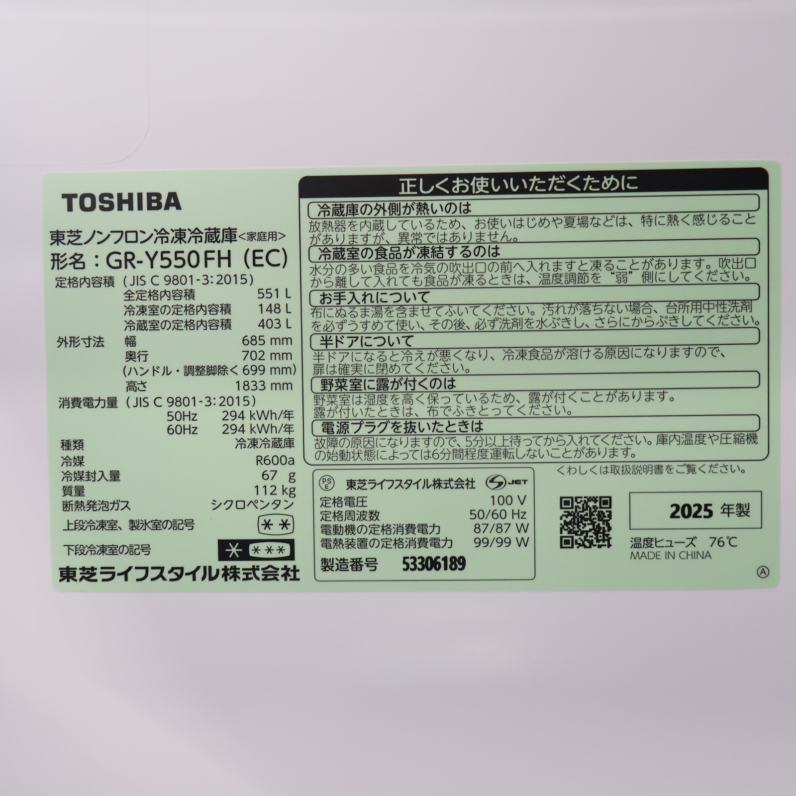 〔展示品〕 冷蔵庫 VEGETA(ベジータ)FHシリーズ サテンゴールド GR-Y550FH-EC [幅68.5cm /551L /6ドア /観音開きタイプ /2025年]