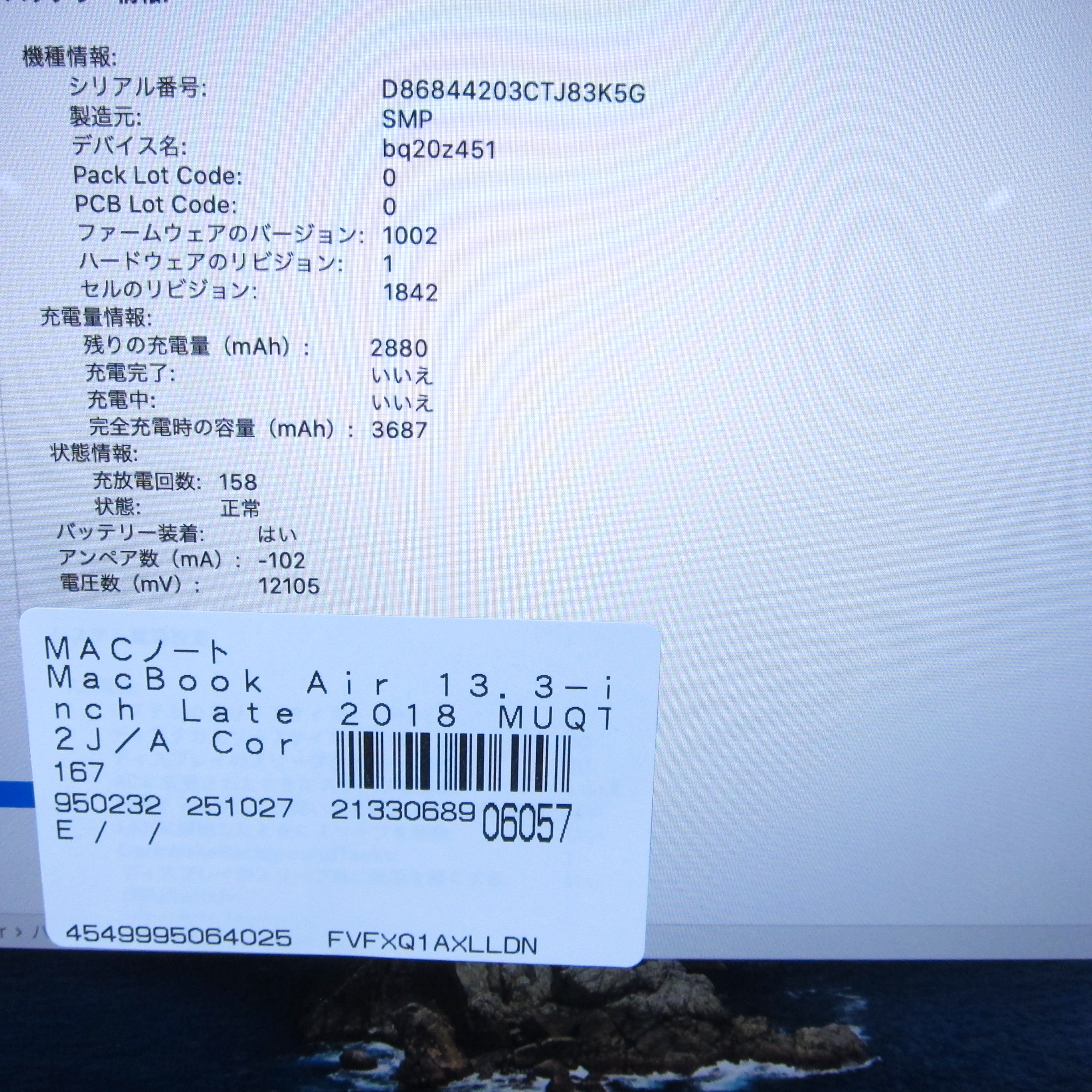 商品名 〔中古品〕 MacBook Air 13.3-inch Late-2018 MUQT2J/A Core_i5 1.6GHz 16GB SSD512GB スペースグレイ 〔10.15 Catalina〕 [グラフィック:Intel UHD Graphics 617/JISキーボード]