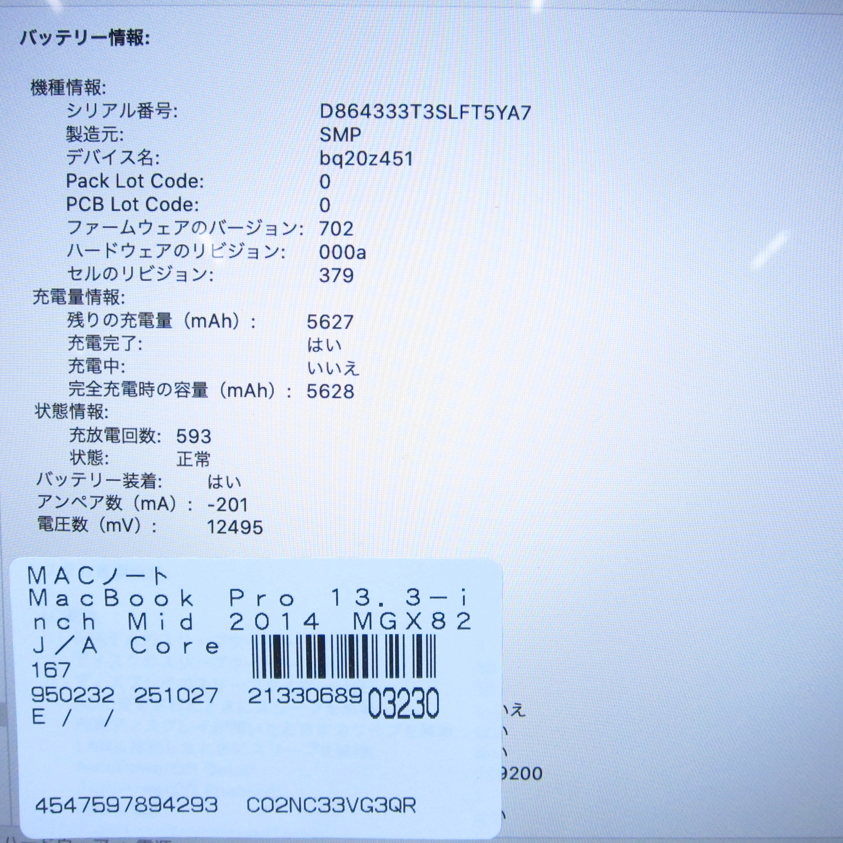 〔中古品〕 MacBook Pro 13.3-inch Mid-2014 MGX82J/A Core_i5 2.6GHz 16GB SSD256GB 〔10.15 Catalina〕 [グラフィック:Intel Iris Graphics 5100/USキーボード]