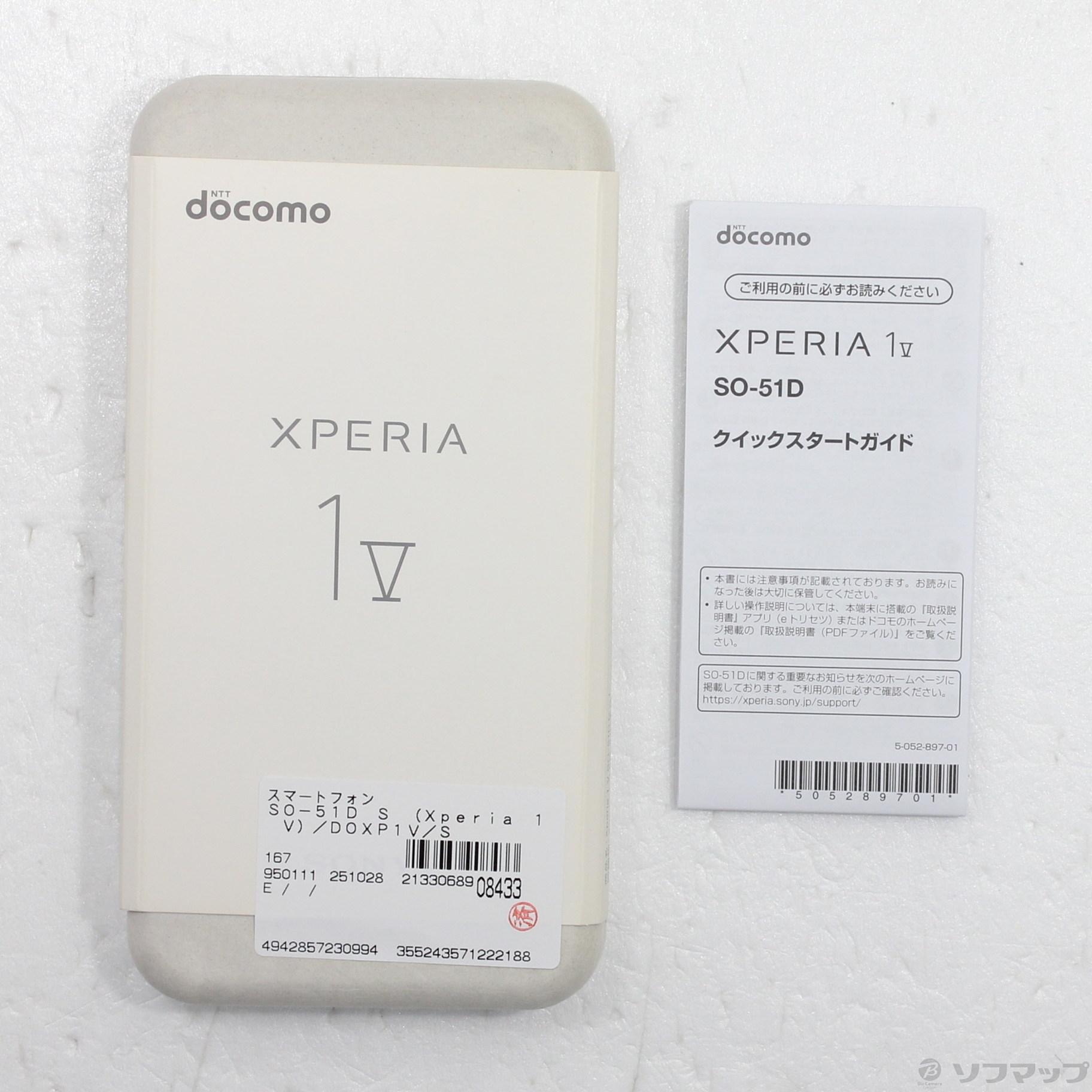 〔中古品〕 Xperia 1 V 256GB プラチナシルバー SO-51D docomo SIMフリー [6.5インチ有機EL/Snapdragon 8 Gen 2]