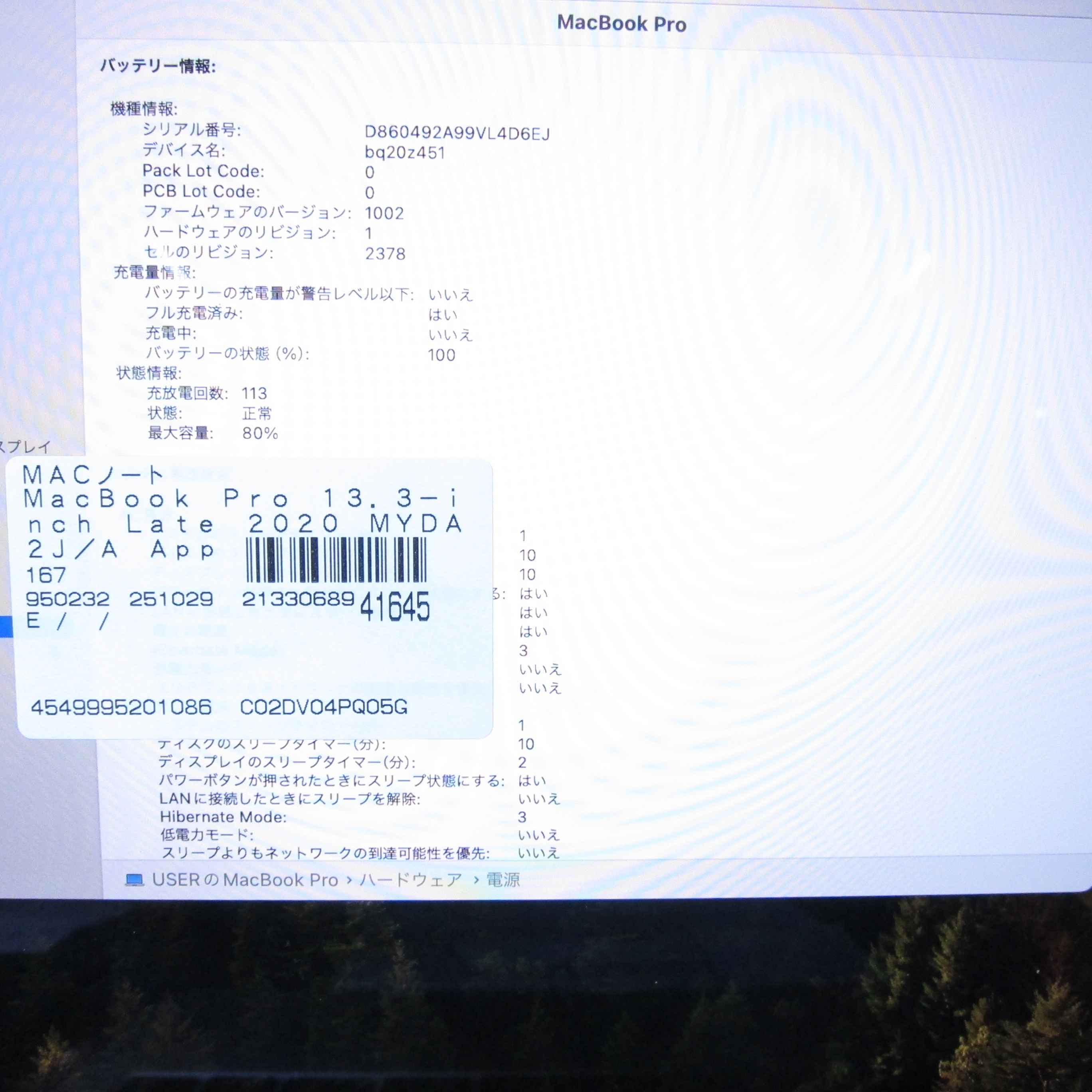 商品名 〔中古品〕 MacBook Pro 13.3-inch Late-2020 MYDA2J/A Apple M1 8コアCPU_8コアGPU 8GB SSD256GB シルバー 〔14.7 Sonoma〕 [グラフィック:オンボード/JISキーボード]
