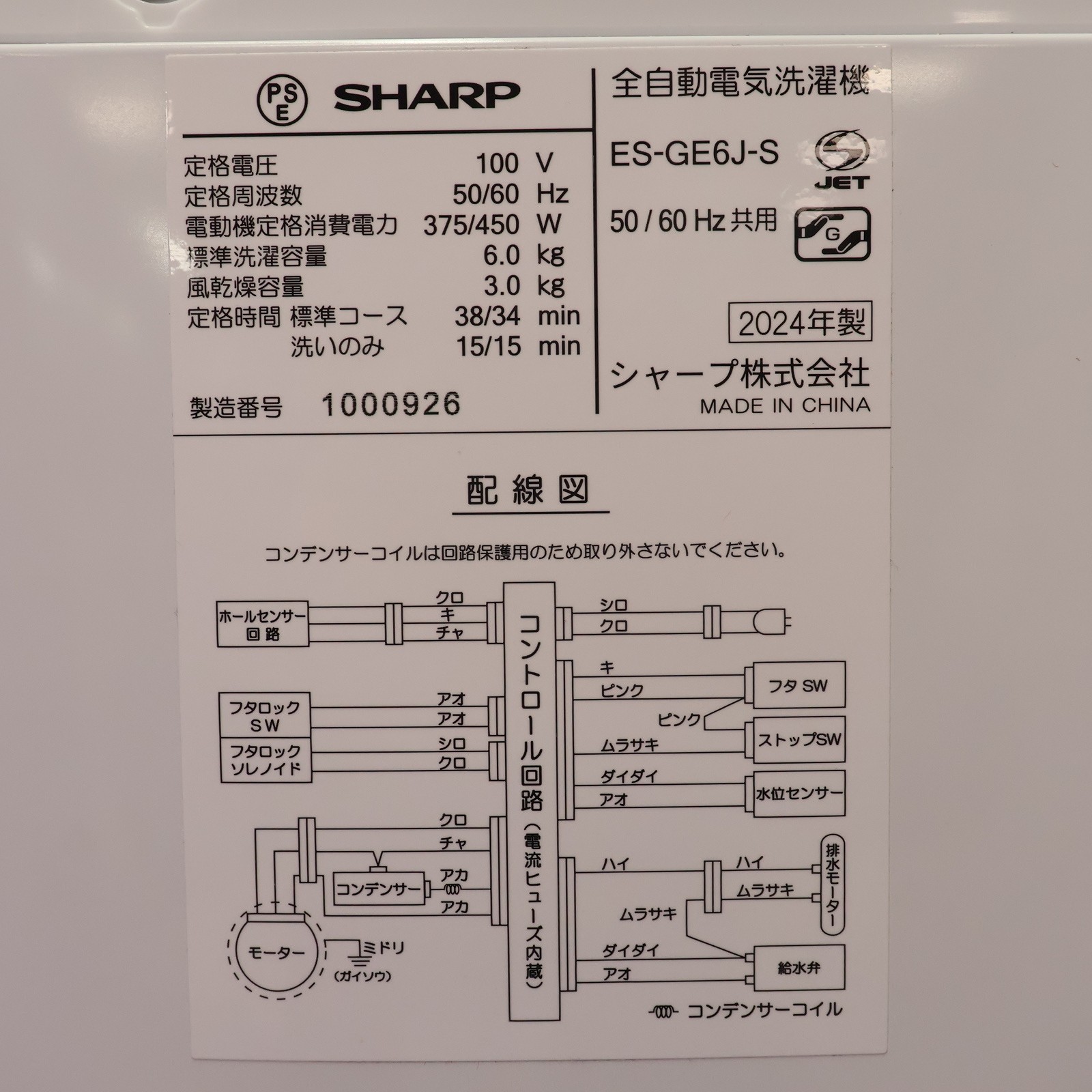 〔展示品〕 全自動洗濯機 シルバー系 ES-GE6J-S [洗濯6.0kg /簡易乾燥(送風機能) /上開き]