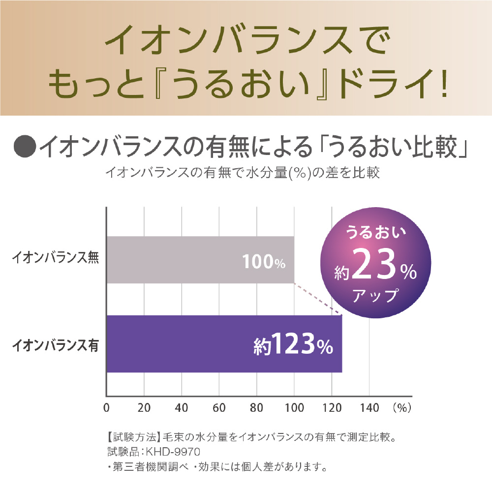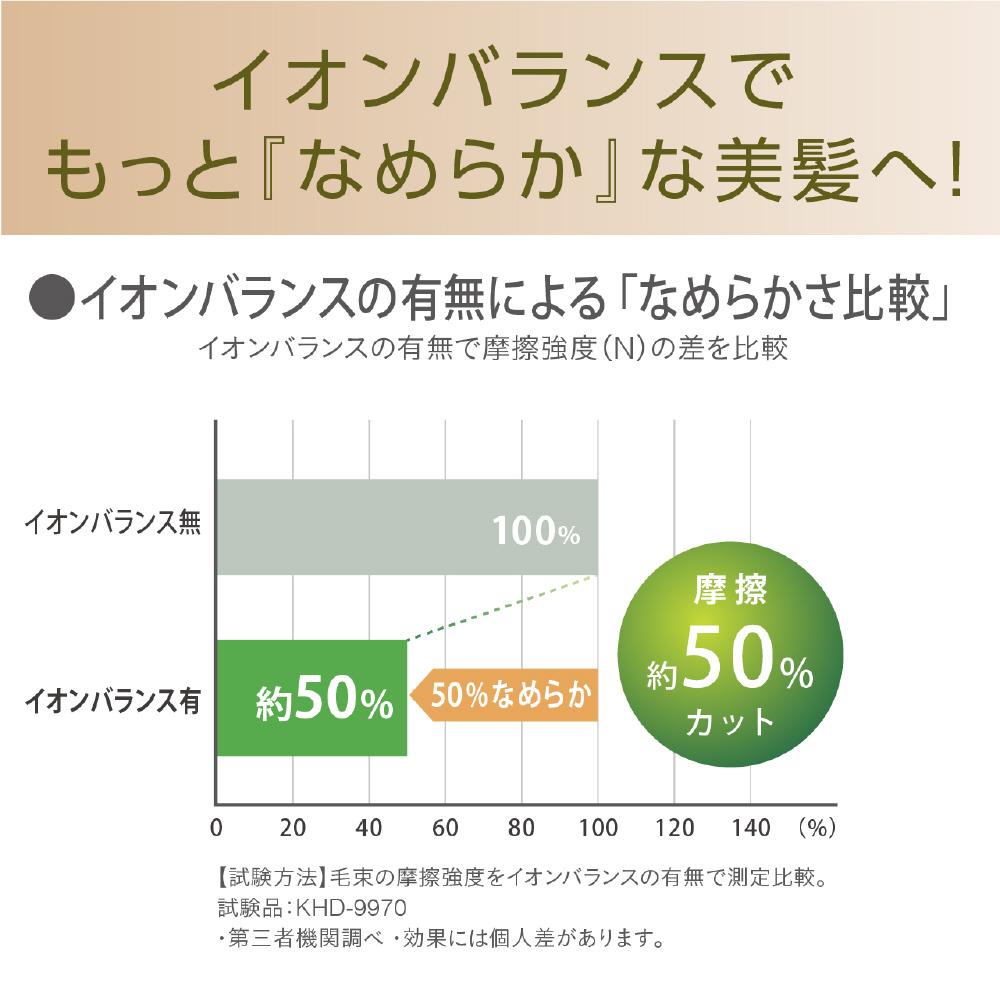 イオンバランステクノロジーの効果で、うるおいツヤドライ。