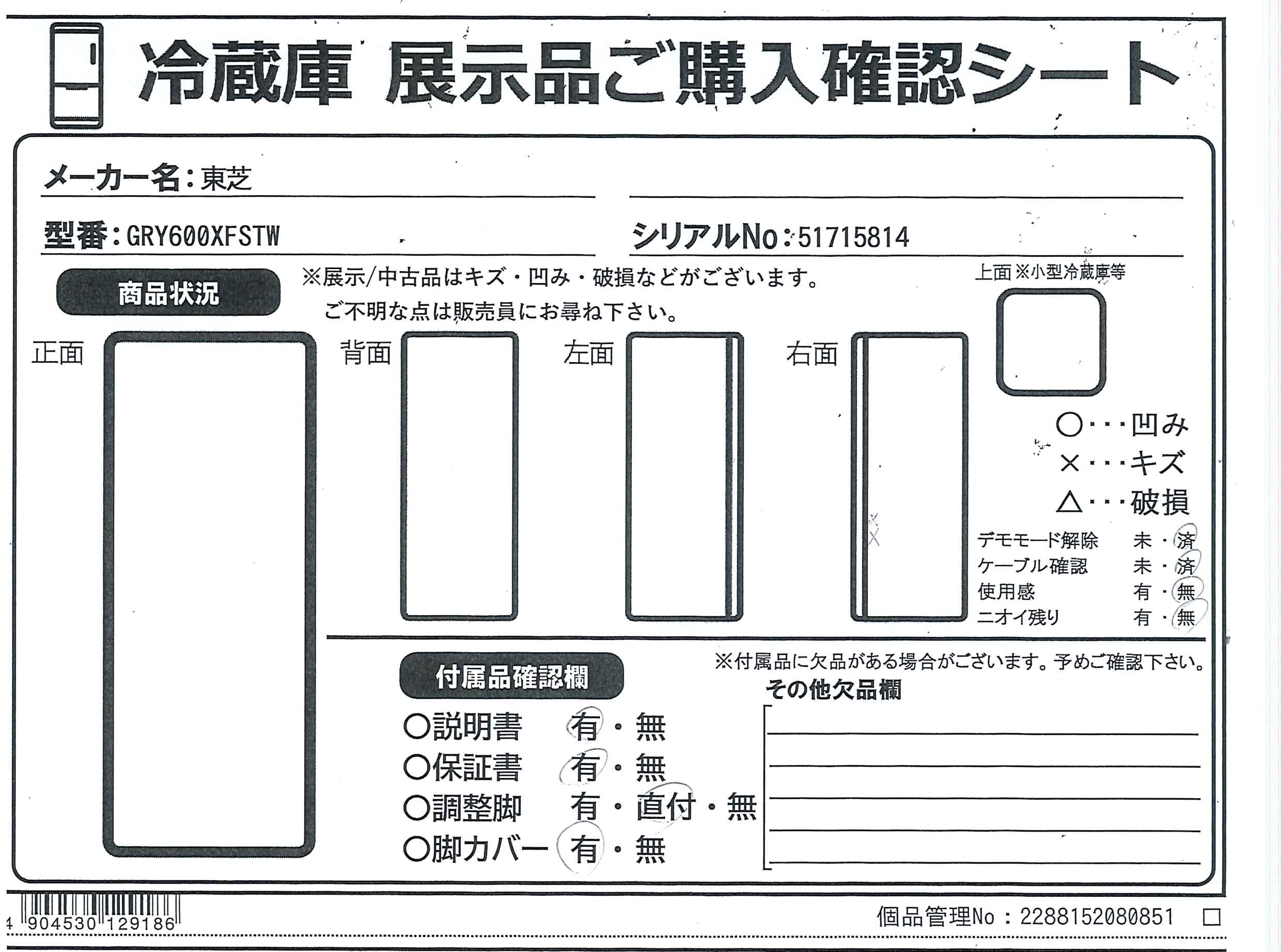 付属品・商品状態について