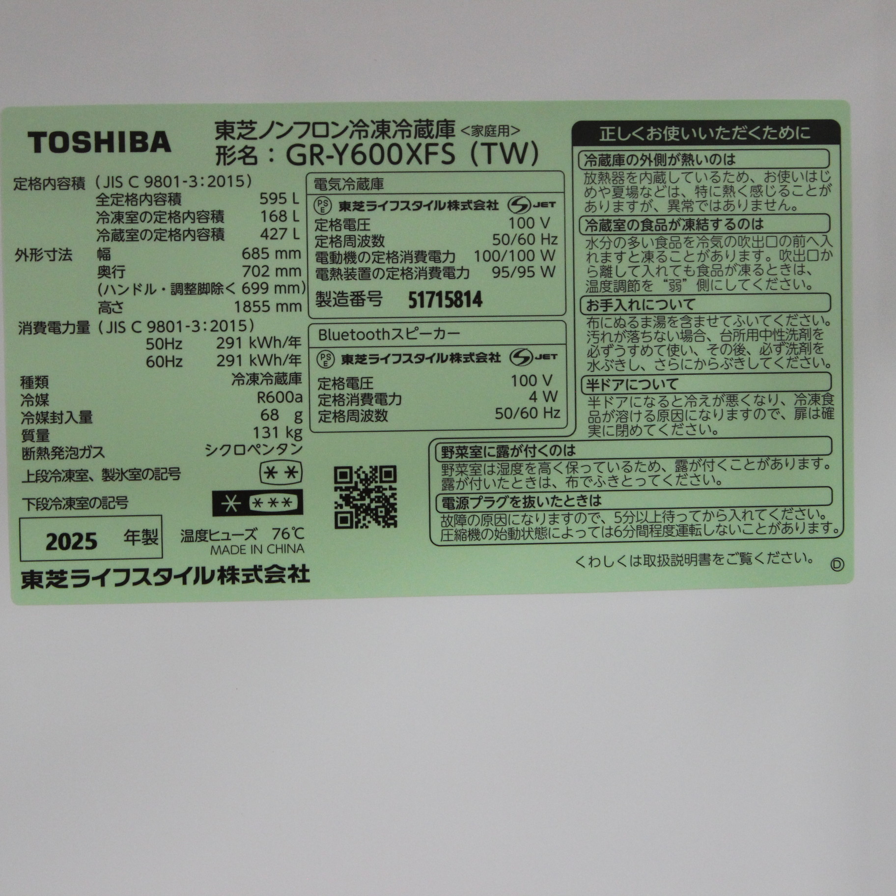 • 大型家電の出荷の際は、グループであるビックカメラの倉庫から出荷する場合もございます。 その際、商品に貼る送り状にビックカメラのロゴが記載され、 配送時の連絡先もビックカメラの商品センターの電話番号が記載される場合がございますが、 ご注文に問題はございませんので、あらかじめご了承ください。