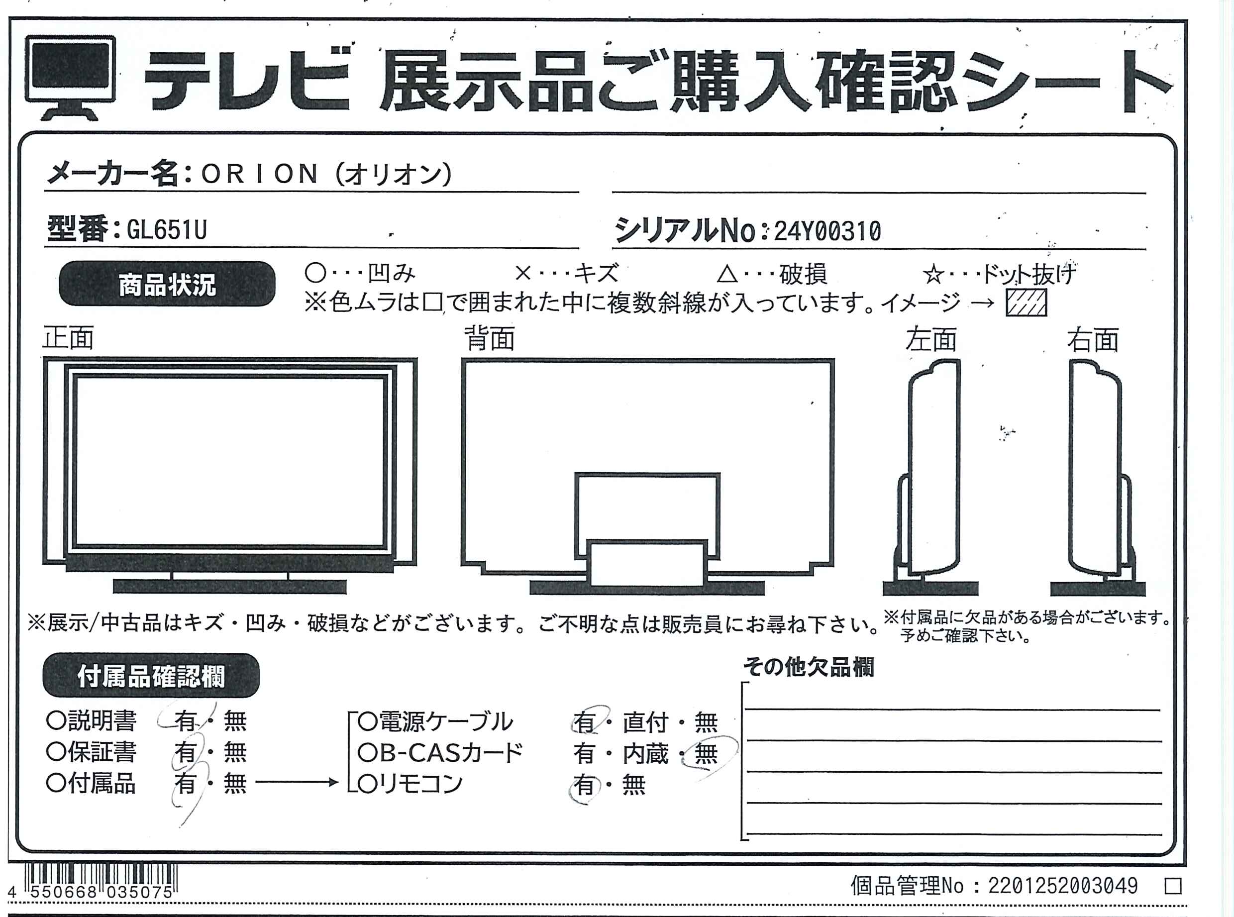 ◆サイズ 本体寸法(スタンド無) 幅1445 奥行94 高さ832mm