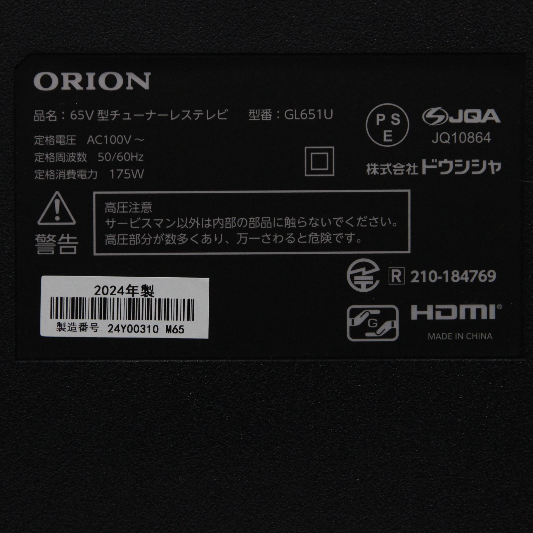 ◆定格消費電力 動作/待機:175W/0.5W