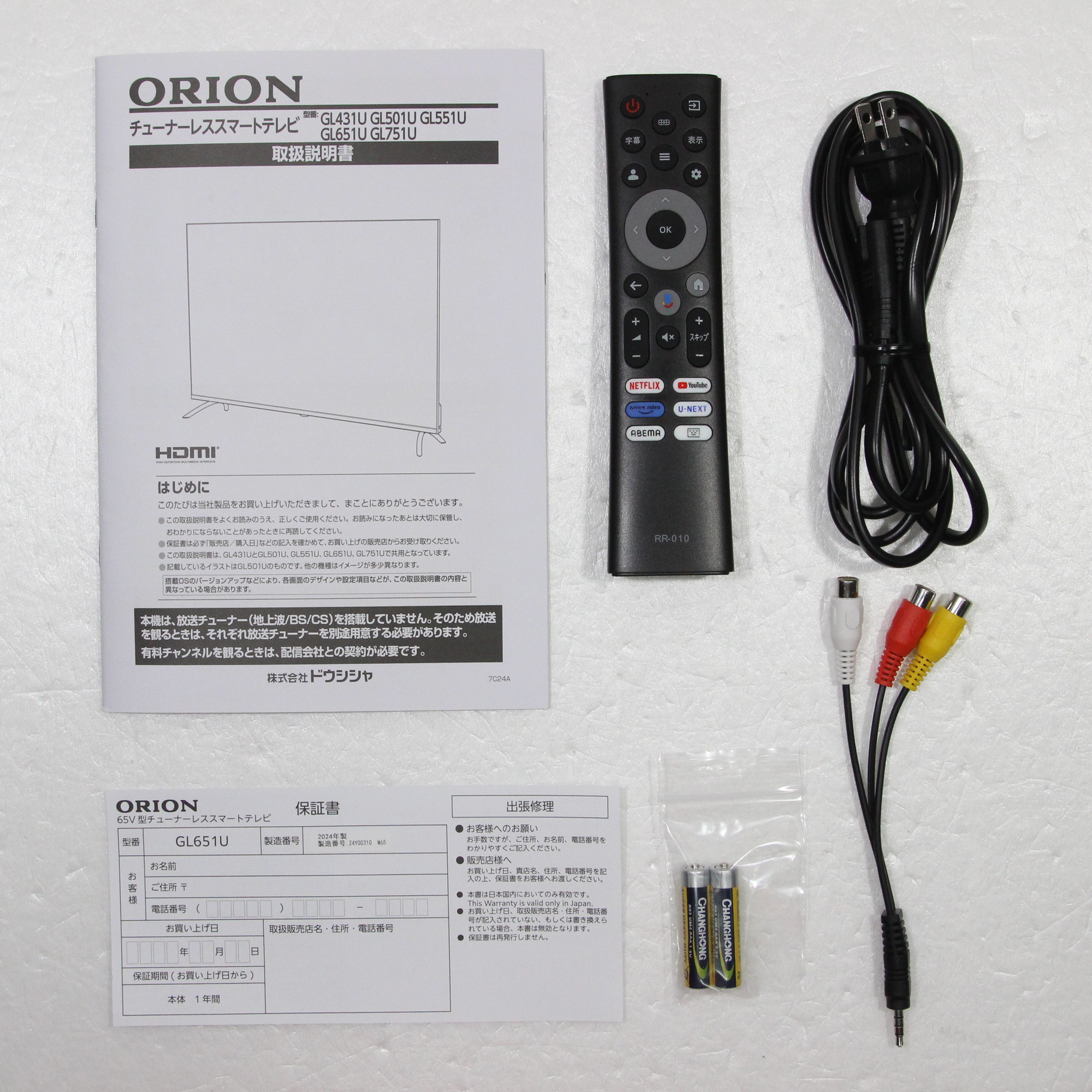 NETFLIX、YouTube、amazon prime video をプリインストール。リモコンに、U-NEXT、ABEMAのダイレクトキーを追加。