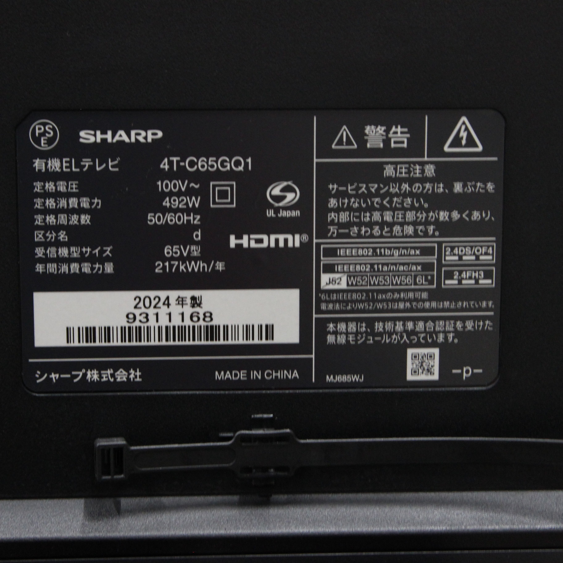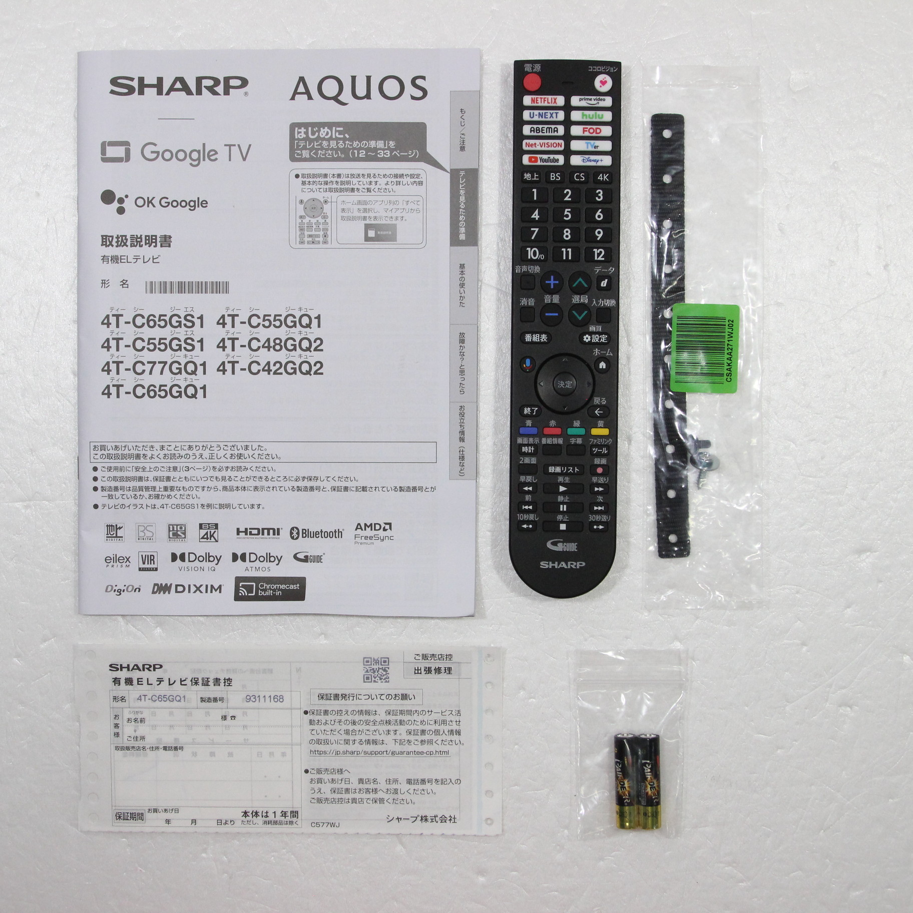 〔展示品〕 有機ELテレビ AQUOS ブラック 4T-C65GQ1 [65V型 /Bluetooth対応 /4K対応 /BS・CS 4Kチューナー内蔵 /YouTube対応]