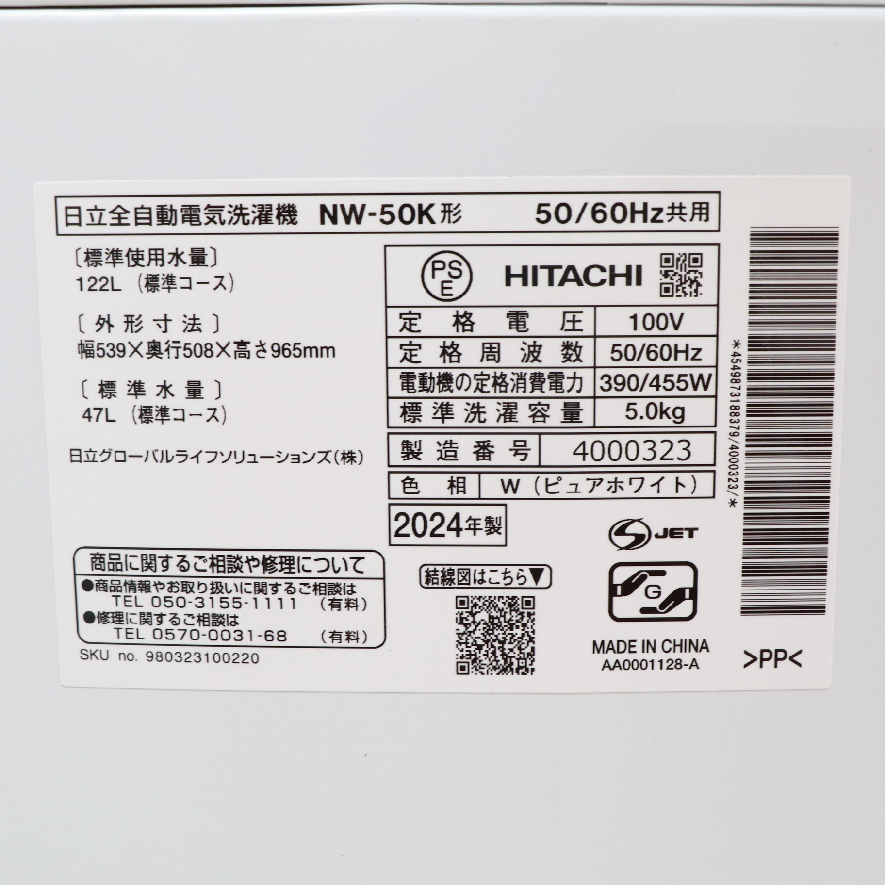 〔展示品〕 全自動洗濯機 2ステップウォッシュ ピュアホワイト NW-50K-W [洗濯5.0kg /簡易乾燥(送風機能) /上開き]