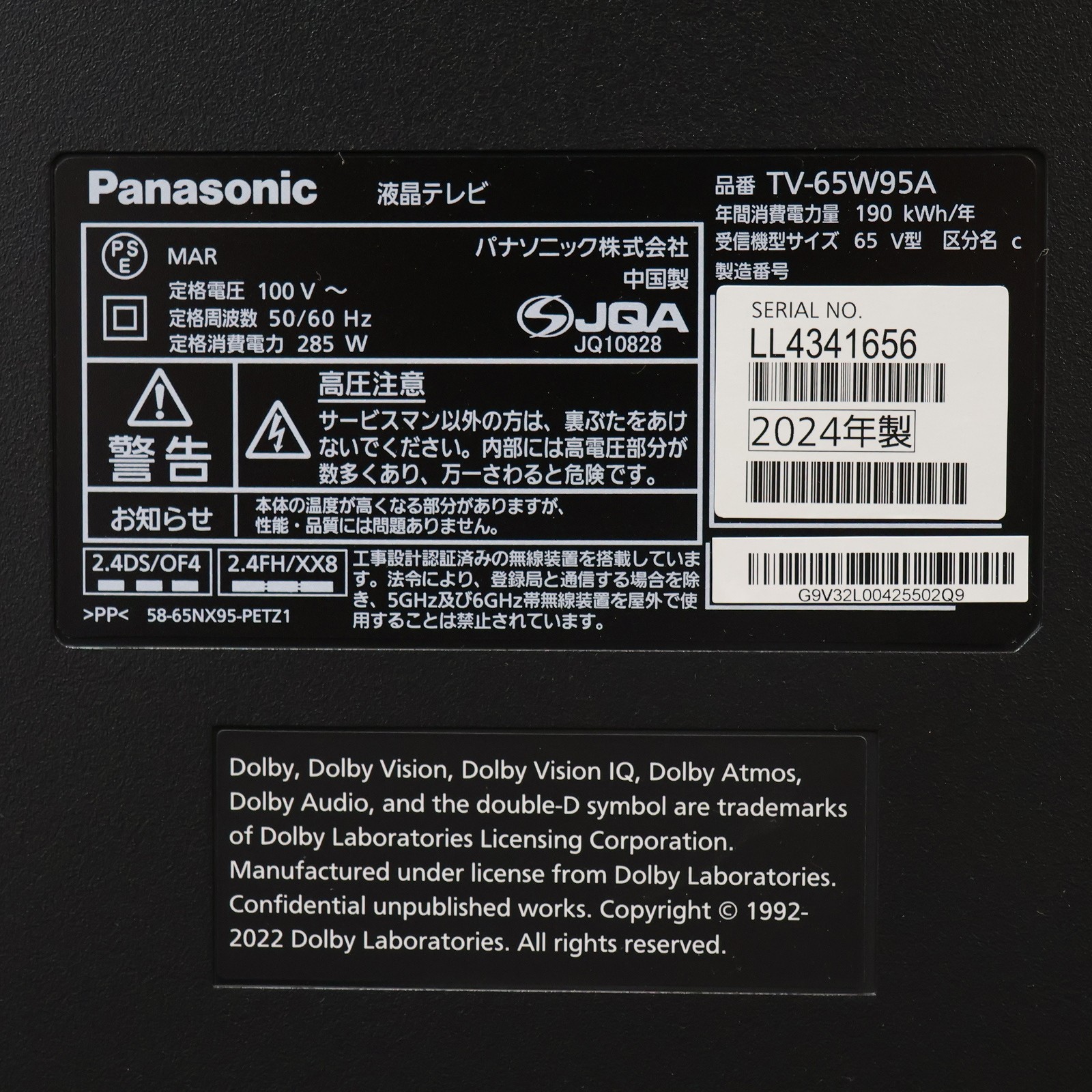 〔展示品〕 液晶テレビ VIERA(ビエラ) TV-65W95A [65V型 /Bluetooth対応 /4K対応 /YouTube対応]
