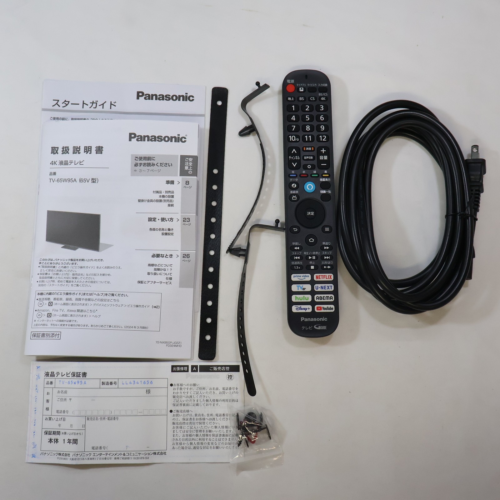 中古商品ランクについて 付属品・商品状態について 〔付属品〕説明書、リモコン、電源コード、スタンド、本体固定用ネジX4(M5・20)、クランパーX2、ベルト、ねじ(ベルト用)、木ねじ、金具X2