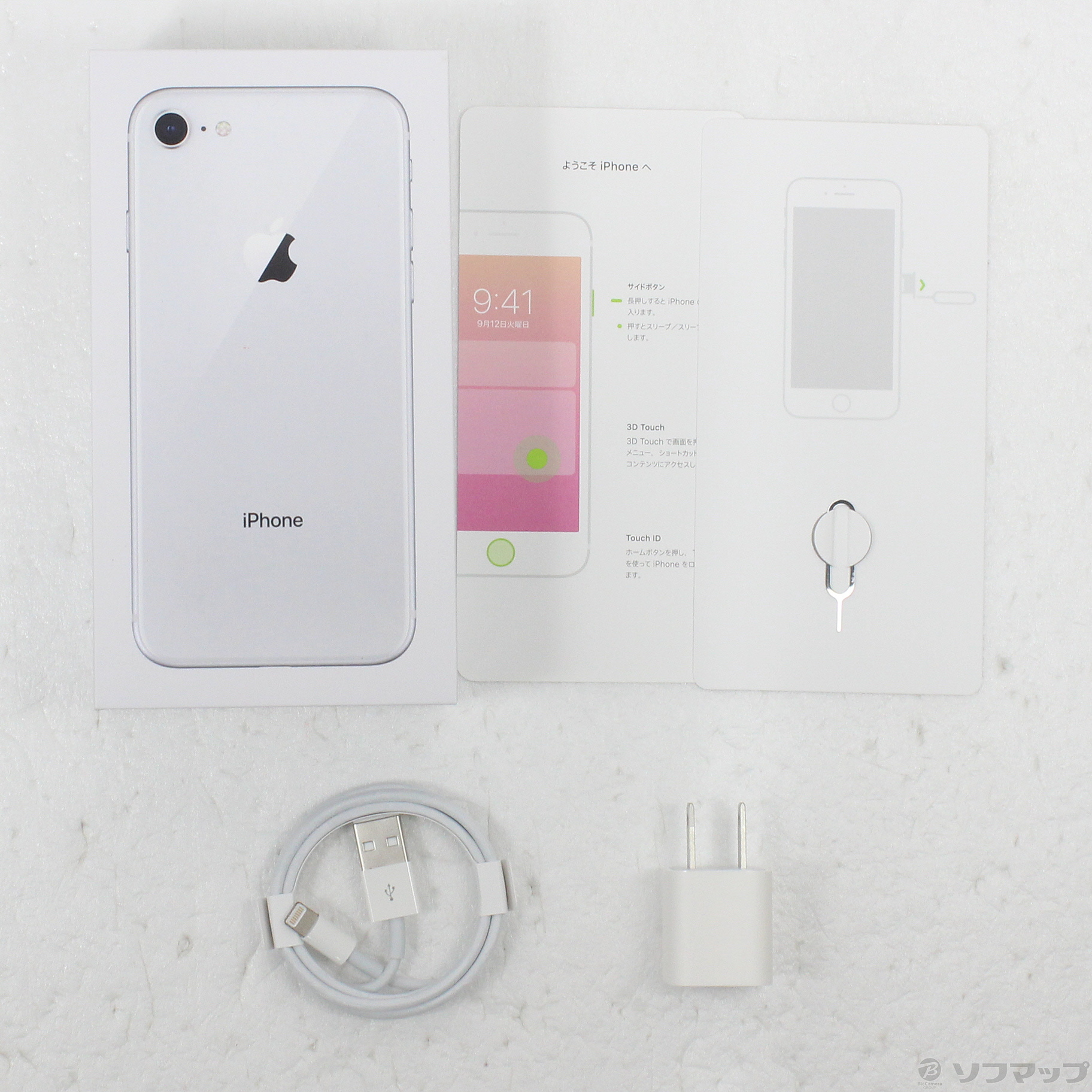 〔付属品〕USB電源アダプタ、USB-A - Lightningケーブル、SIMトレイ、外箱