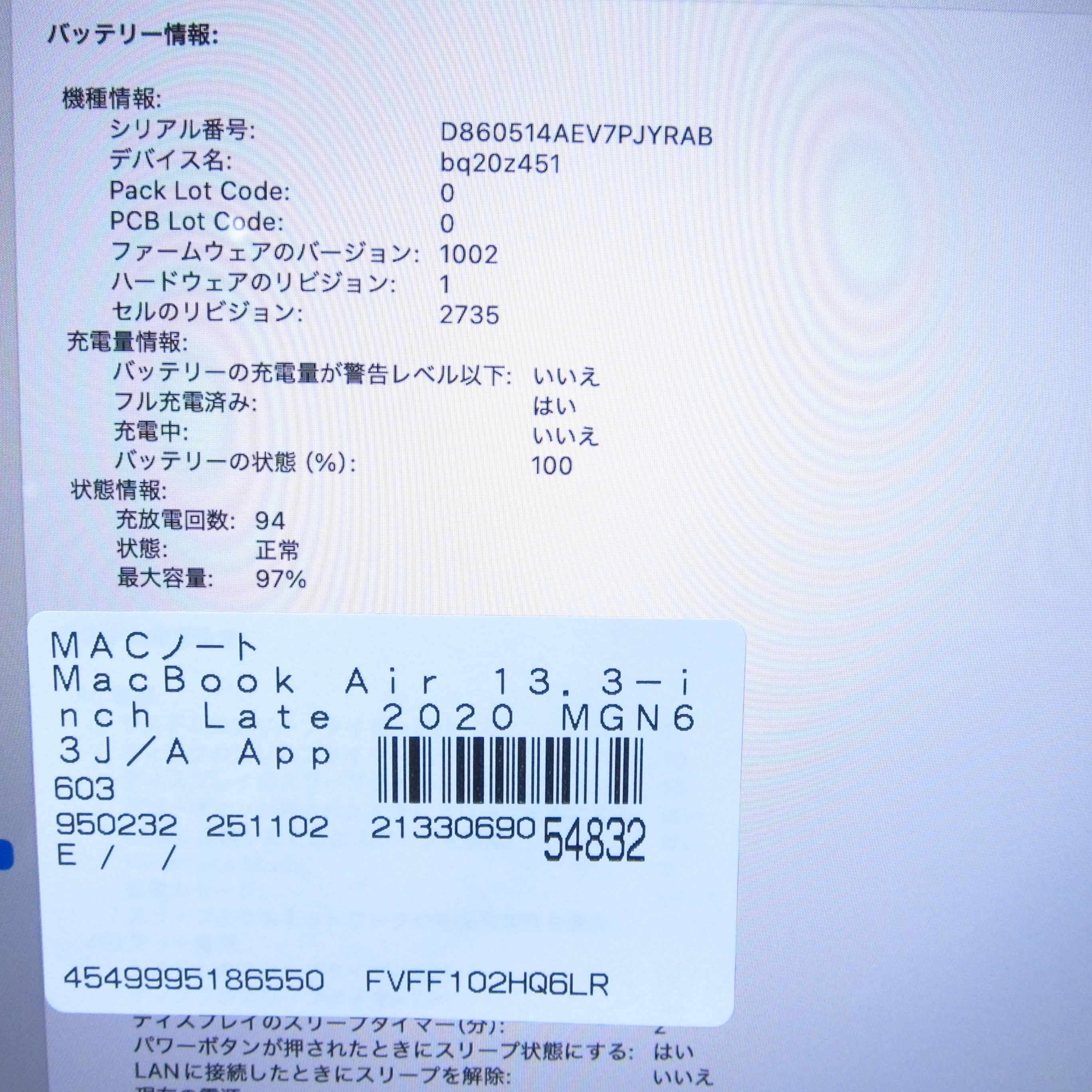 商品名 〔中古品〕 MacBook Air 13.3-inch Late-2020 MGN63J/A Apple M1 8コアCPU_7コアGPU 16GB SSD1TB スペースグレイ 〔15.3 Sequoia〕 [グラフィック:オンボード/JISキーボード]