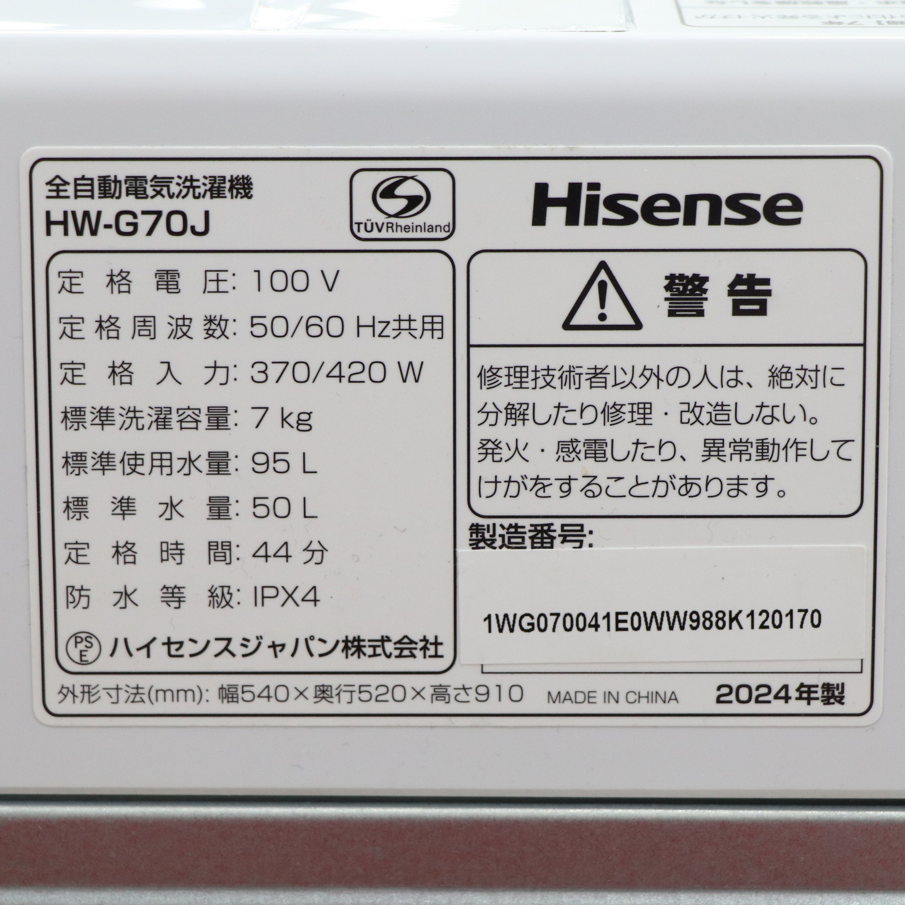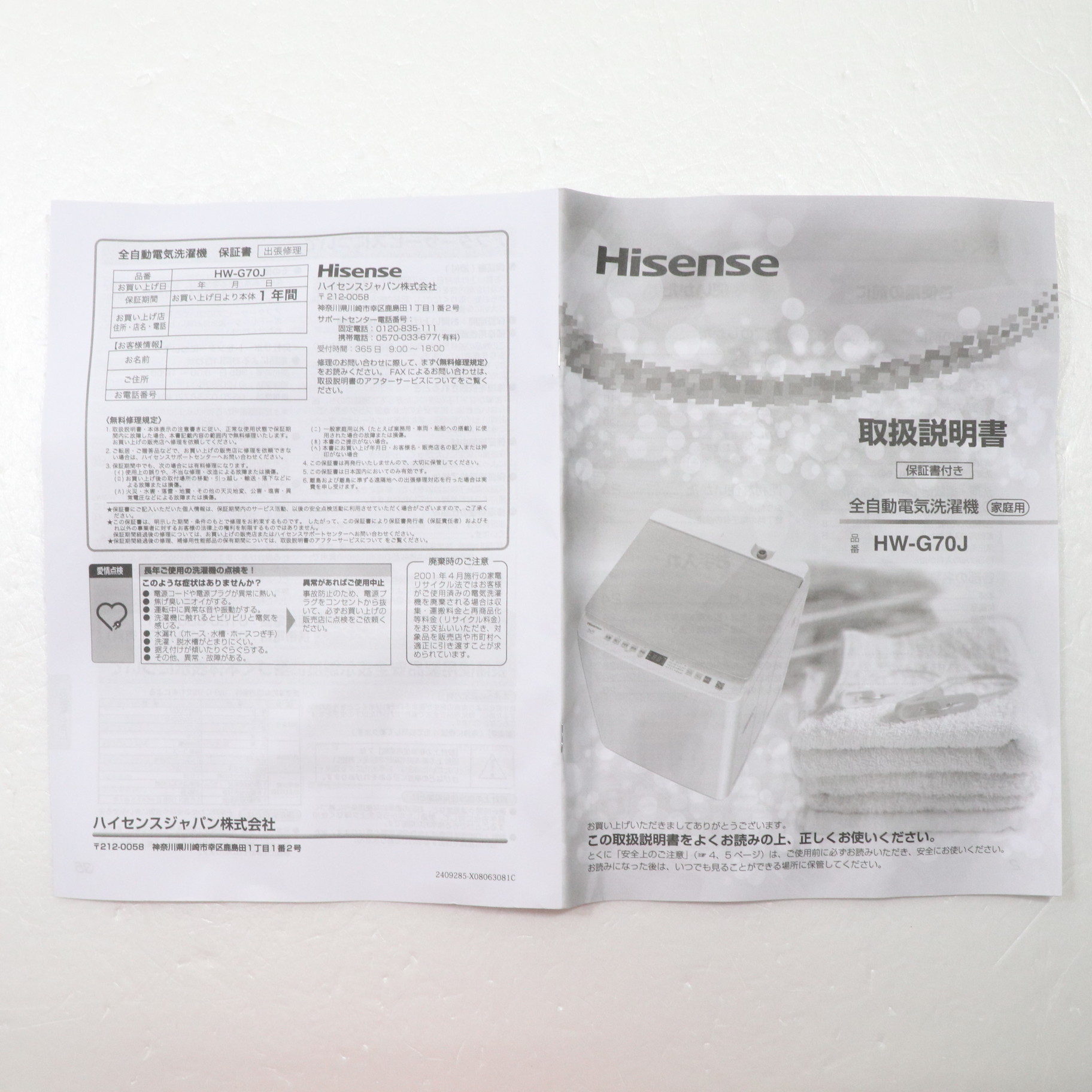 〔展示品〕 全自動洗濯機 HW-G70J [洗濯7.0kg /簡易乾燥(送風機能) /上開き]
