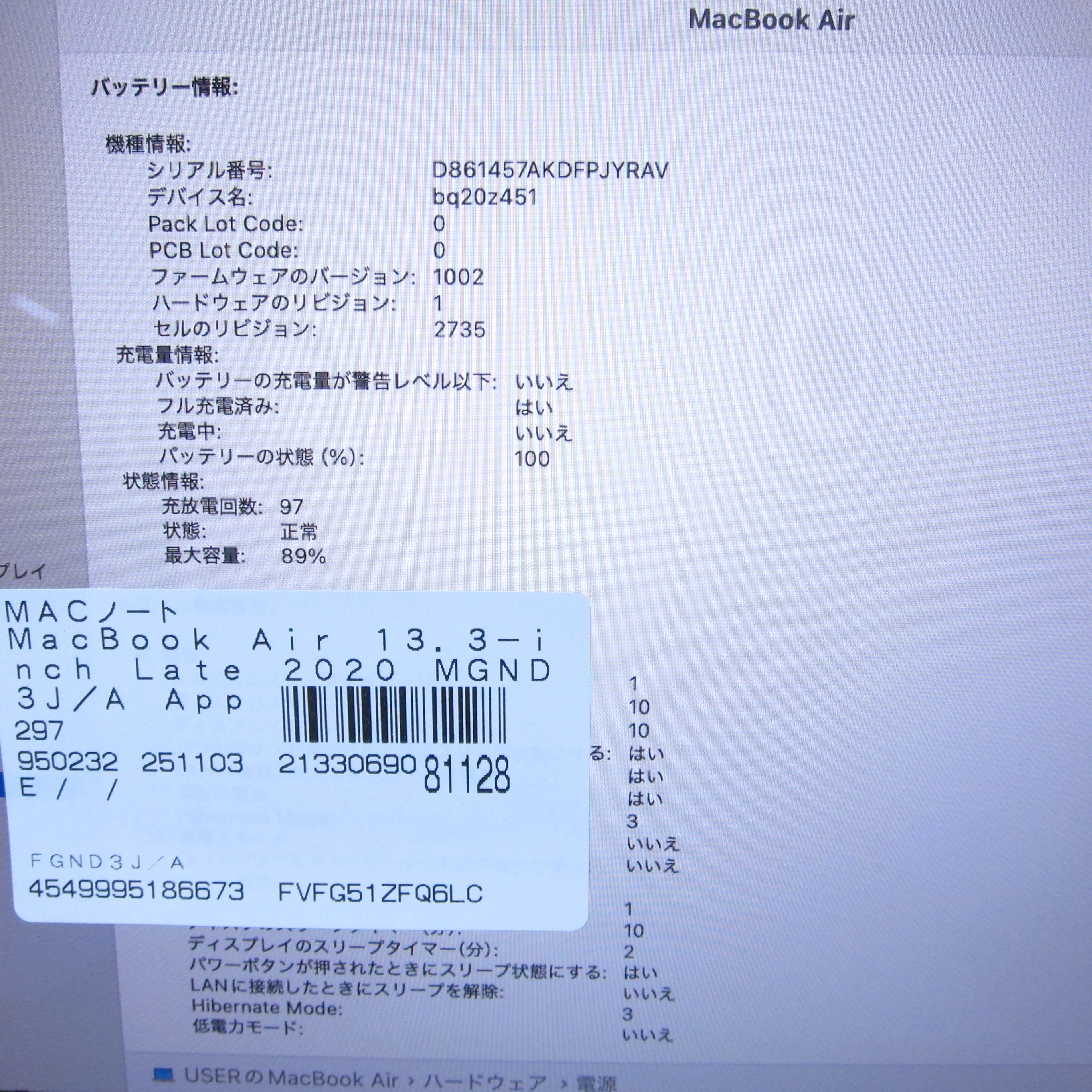 〔中古品〕 MacBook Air 13.3-inch Late-2020 MGND3J/A Apple M1 8コアCPU_7コアGPU 8GB SSD256GB ゴールド 〔15.3 Sequoia〕 [グラフィック:オンボード/JISキーボード]