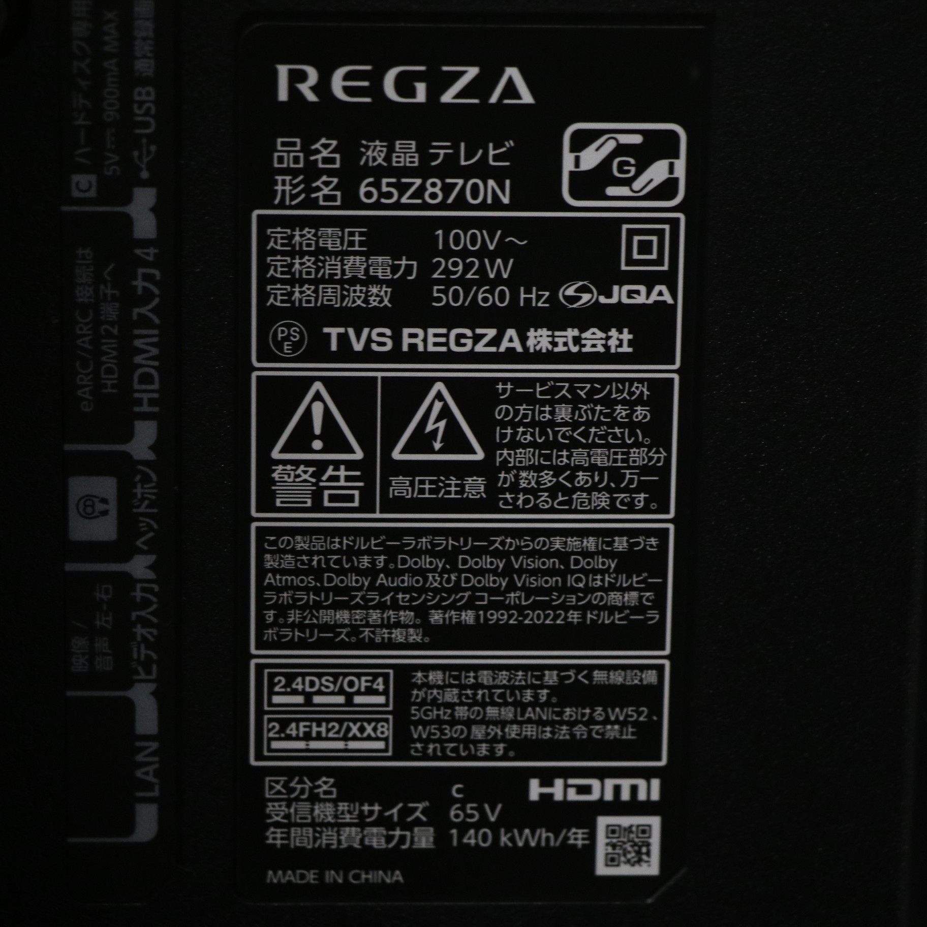 〔展示品〕 液晶テレビ REGZA(レグザ) 65Z870N [65V型 /Bluetooth対応 /4K対応 /BS・CS 4Kチューナー内蔵 /YouTube対応]