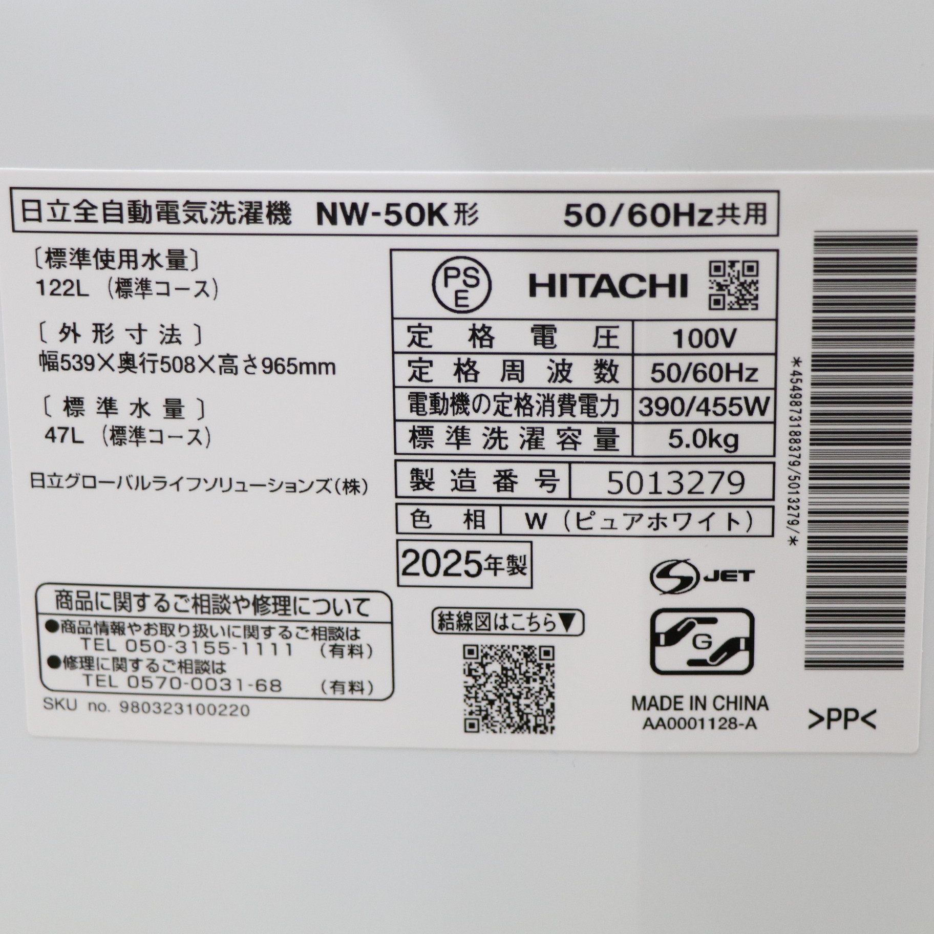〔展示品〕 全自動洗濯機 2ステップウォッシュ ピュアホワイト NW-50K-W [洗濯5.0kg /簡易乾燥(送風機能) /上開き]