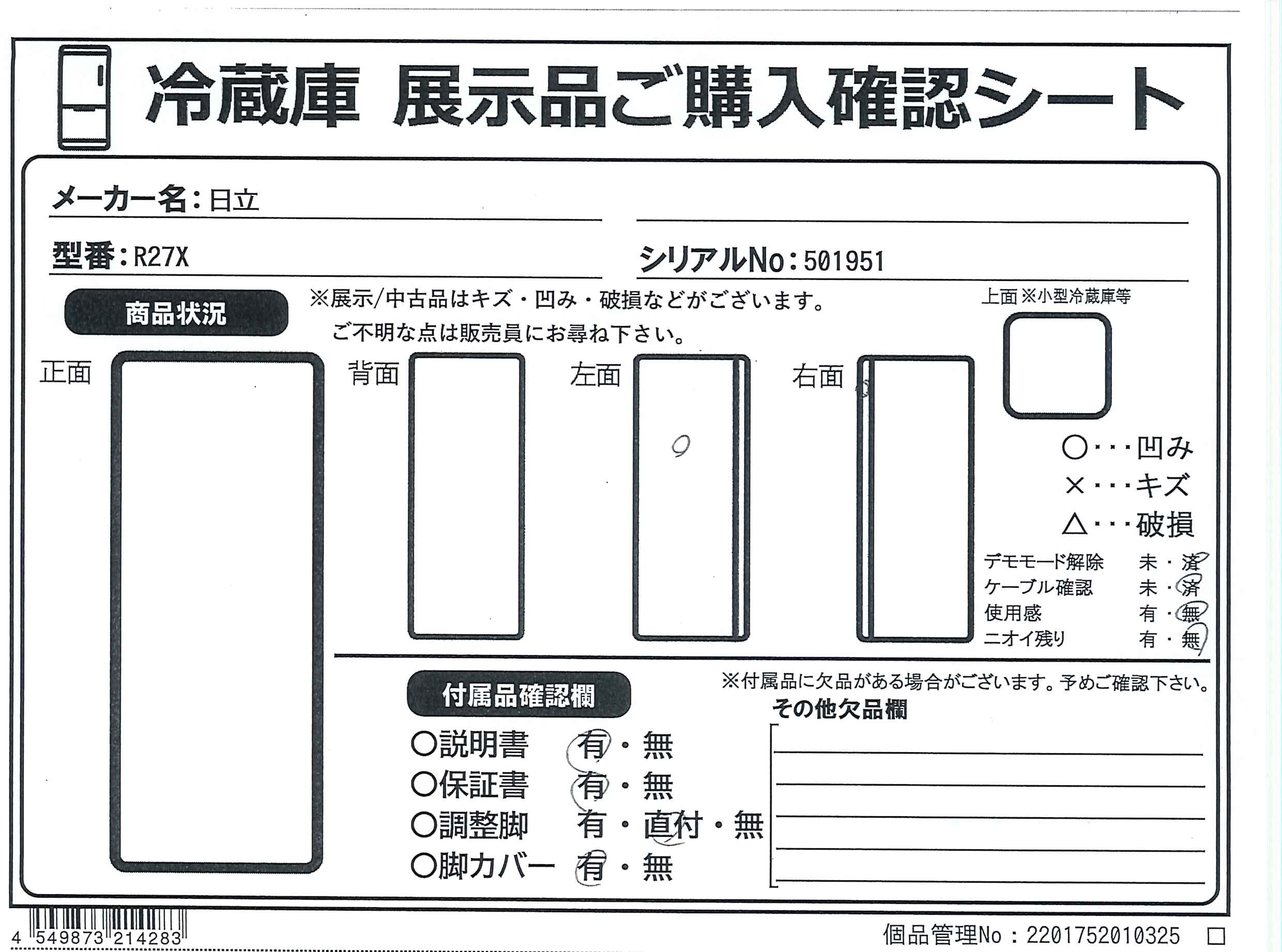 中古商品ランクについて 付属品・商品状態について 〔付属品〕説明書、蒸発皿、調節脚、卵スタンド、製氷皿、貯氷ケース、脚カバー