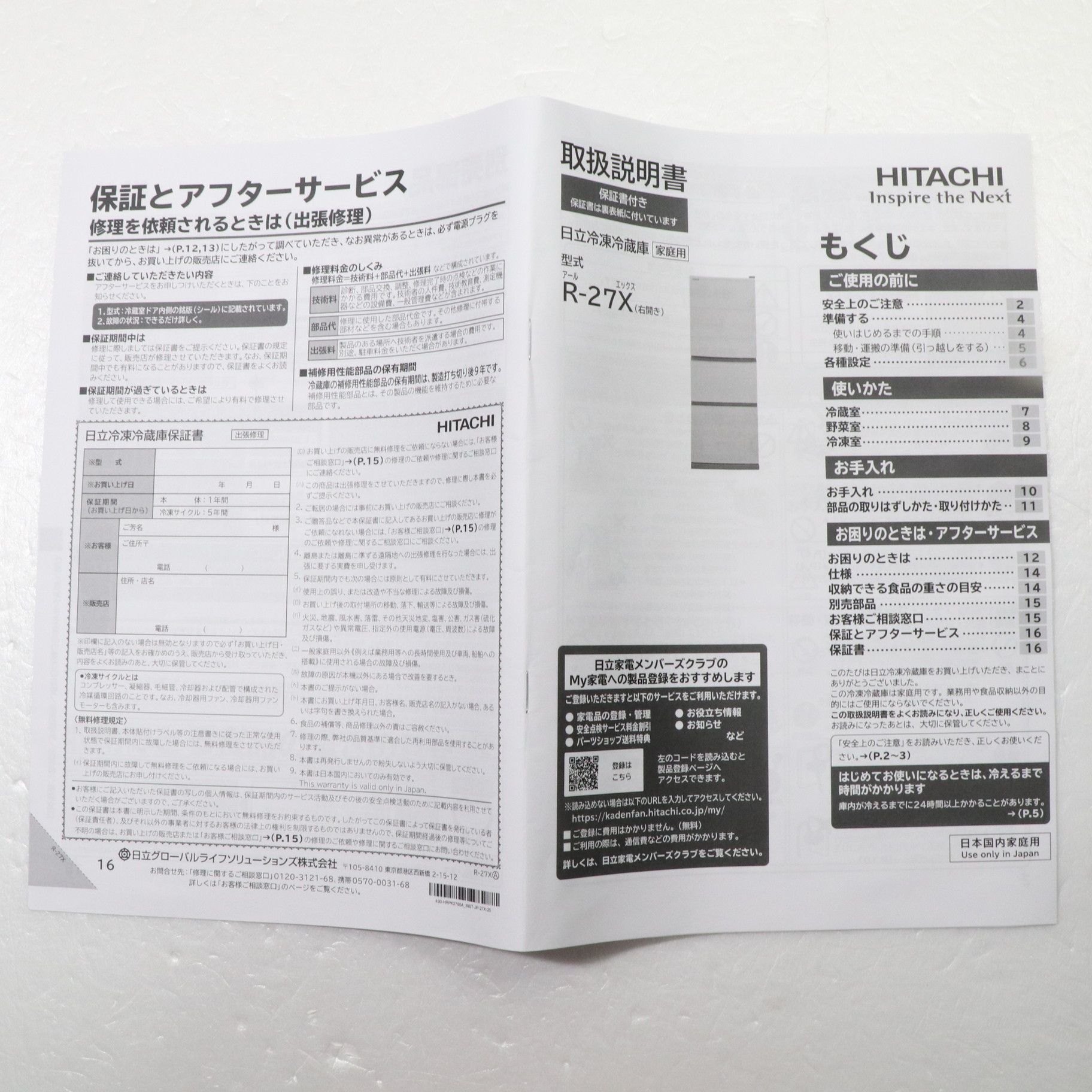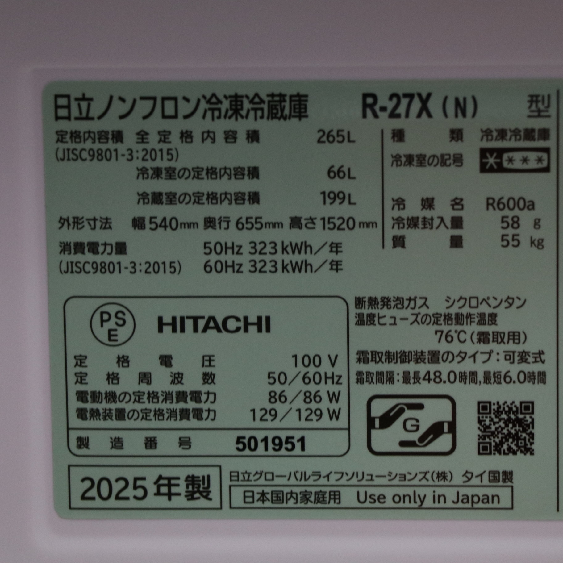 〔展示品〕 冷蔵庫 ライトゴールド R-27X-N [幅54cm /265L /3ドア /右開きタイプ /2025年]