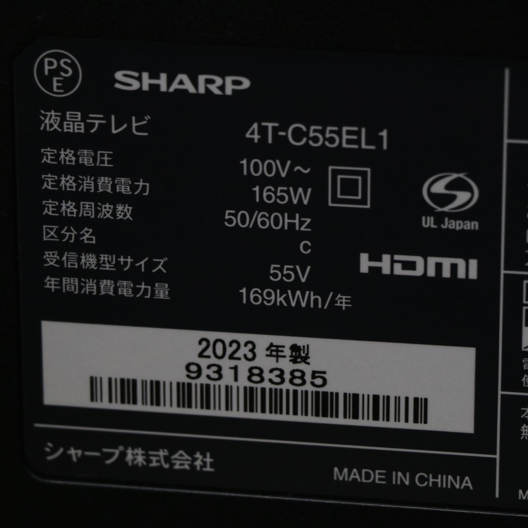 〔展示品〕 液晶テレビ AQUOS(アクオス) 4T-C55EL1 [55V型 /Bluetooth対応 /4K対応 /BS・CS 4Kチューナー内蔵 /YouTube対応]