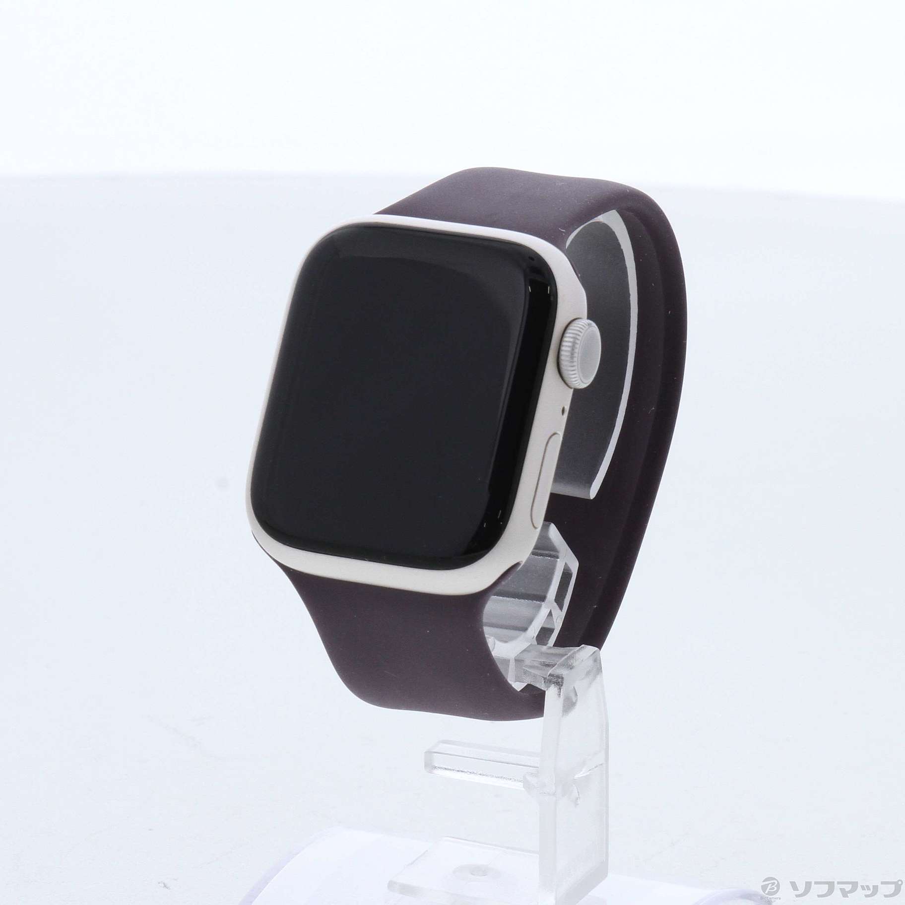 〔中古品〕 Apple Watch Series 7 GPS 41mm スターライトアルミニウムケース ダークチェリーソロループ