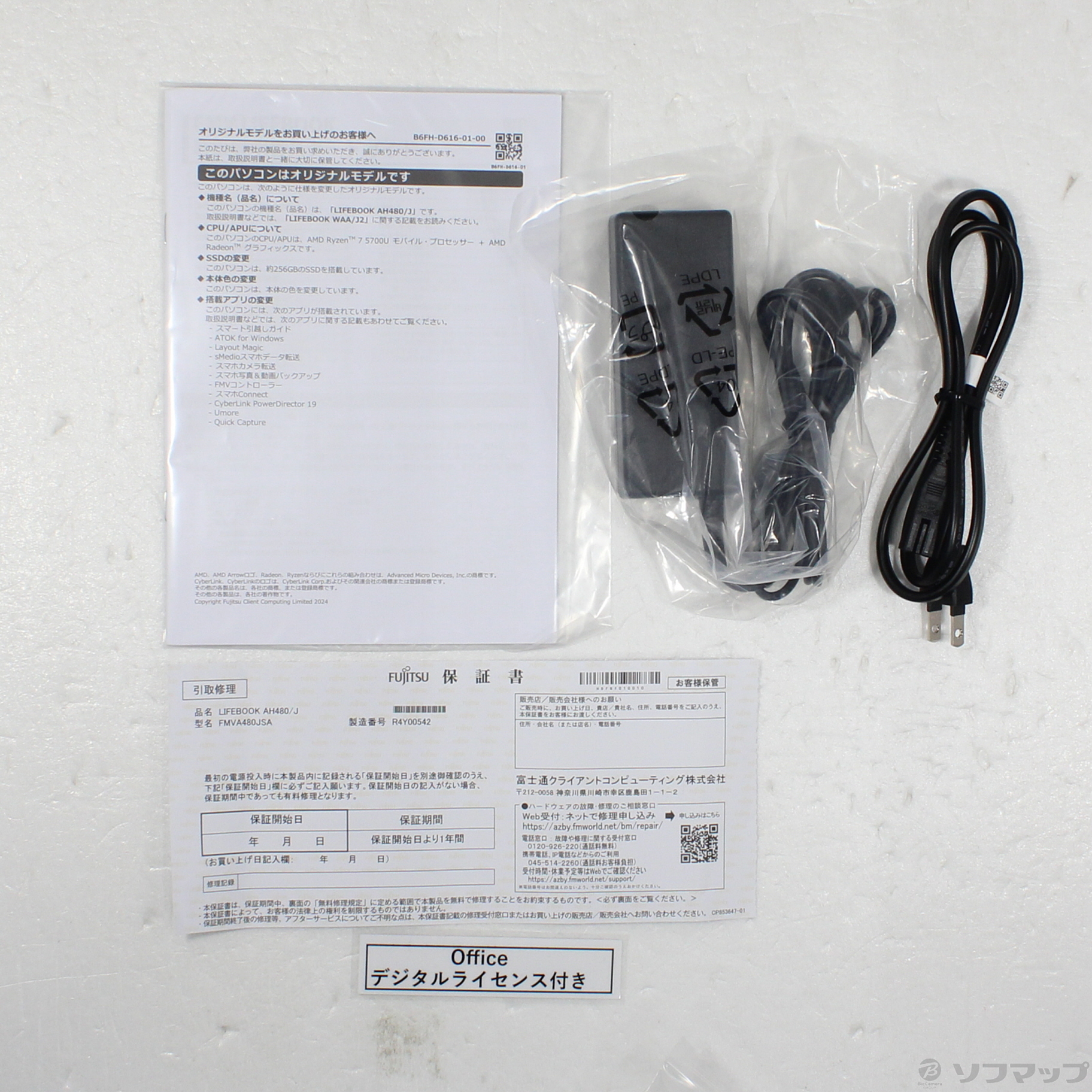 〔展示品〕 LIFEBOOK AH480/J FMVA480JSA ファインシルバー [Ryzen-7-5700U (1.8GHz)/16GB/SSD256GB/15.6インチワイド/Windows11 Home]