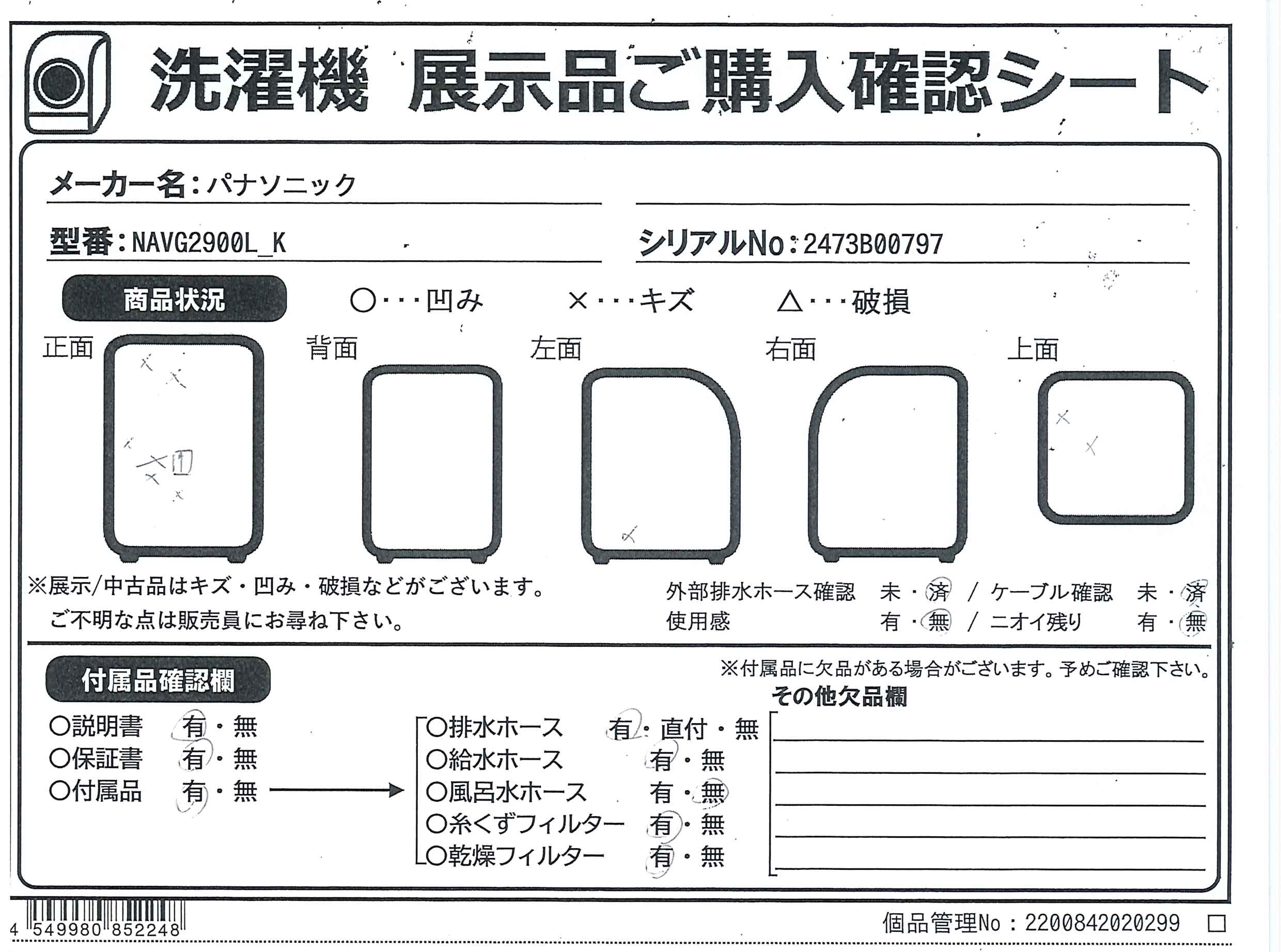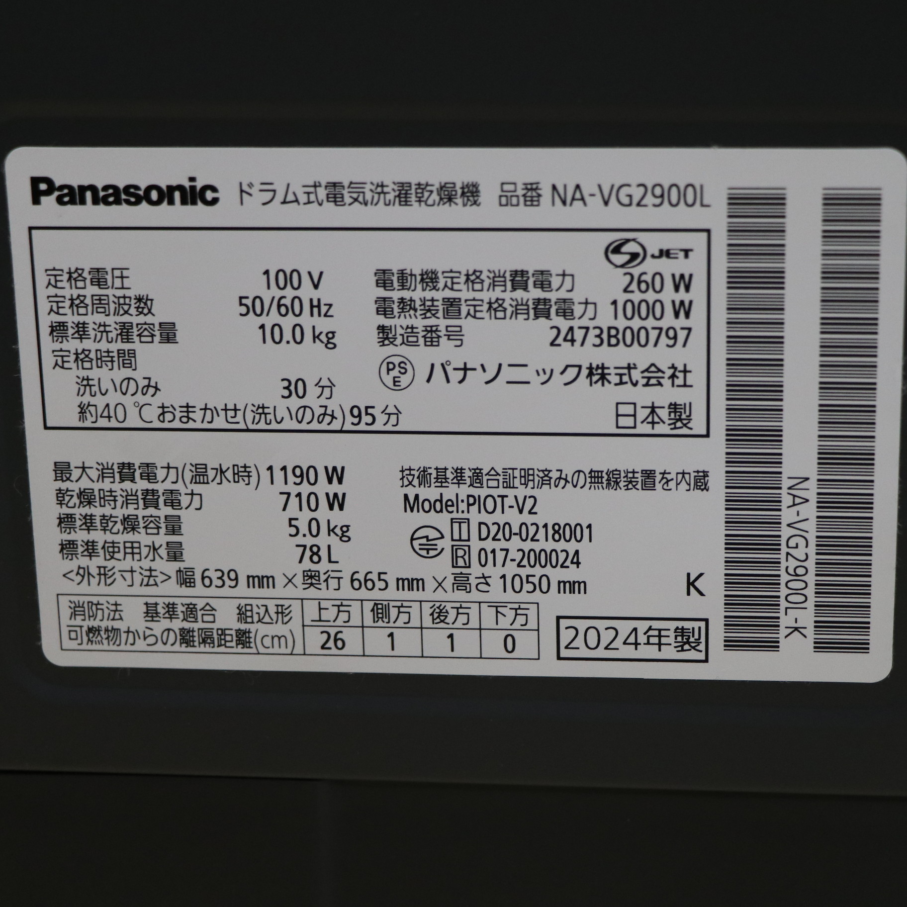 〔展示品〕 ドラム式洗濯乾燥機 Cuble(キューブル) スモーキーブラック NA-VG2900L-K [洗濯10.0kg /乾燥5.0kg /ヒーター乾燥(排気タイプ) /左開き]