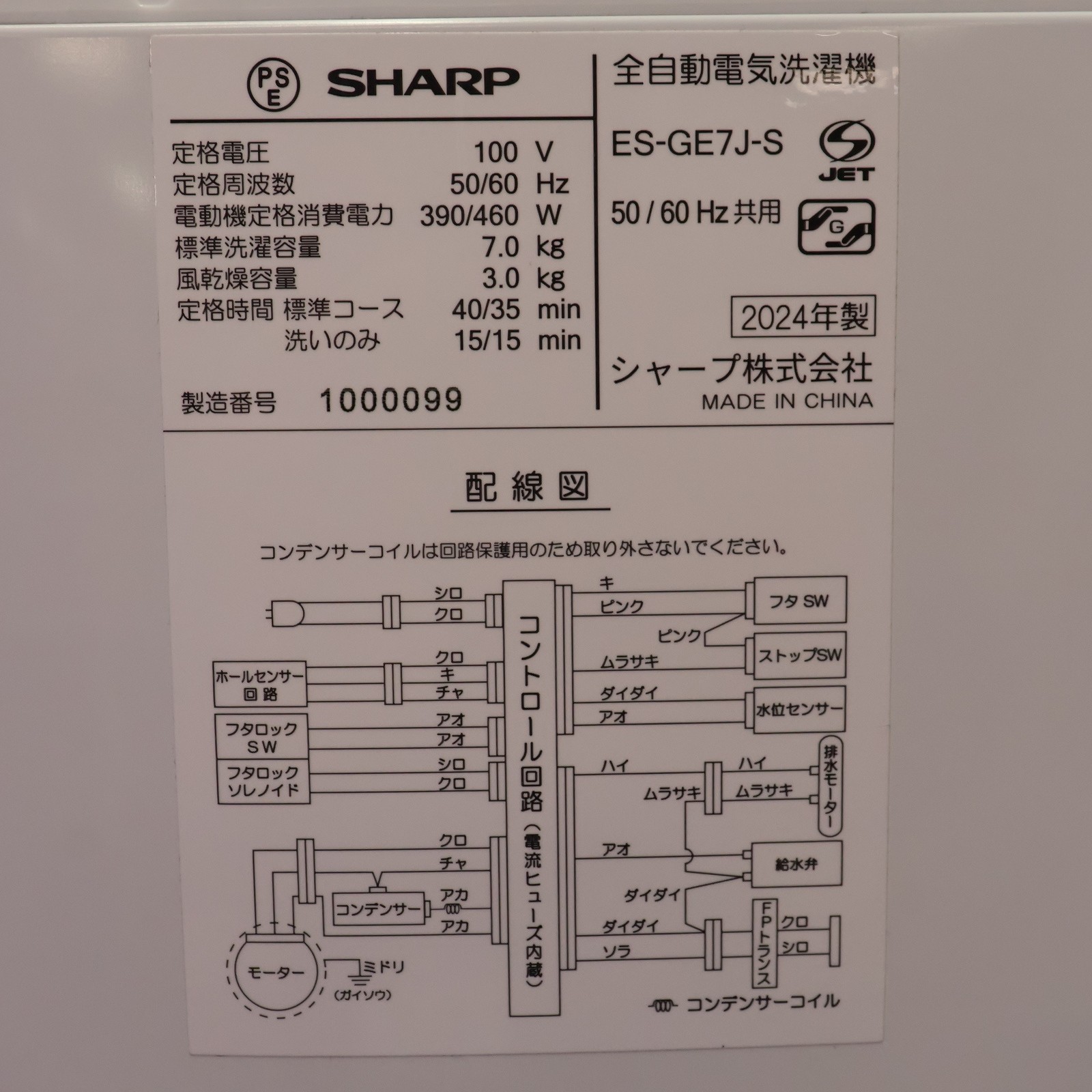 商品名 〔展示品〕 全自動洗濯機 シルバー系 ES-GE7J-S [洗濯7.0kg /簡易乾燥(送風機能) /上開き]