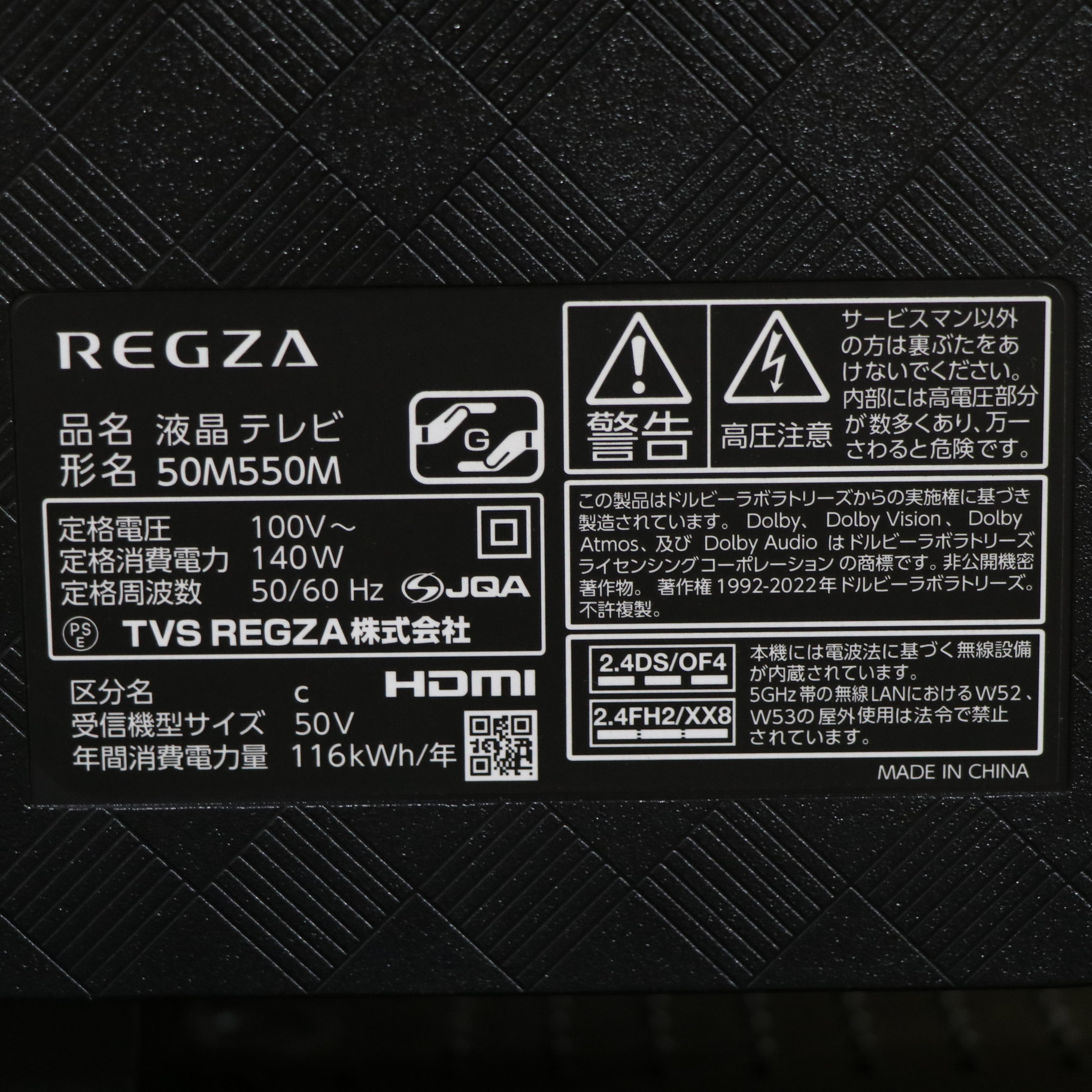 〔展示品〕 液晶テレビ REGZA(レグザ) 50M550M [50V型 /Bluetooth対応 /4K対応 /BS・CS 4Kチューナー内蔵 /YouTube対応]