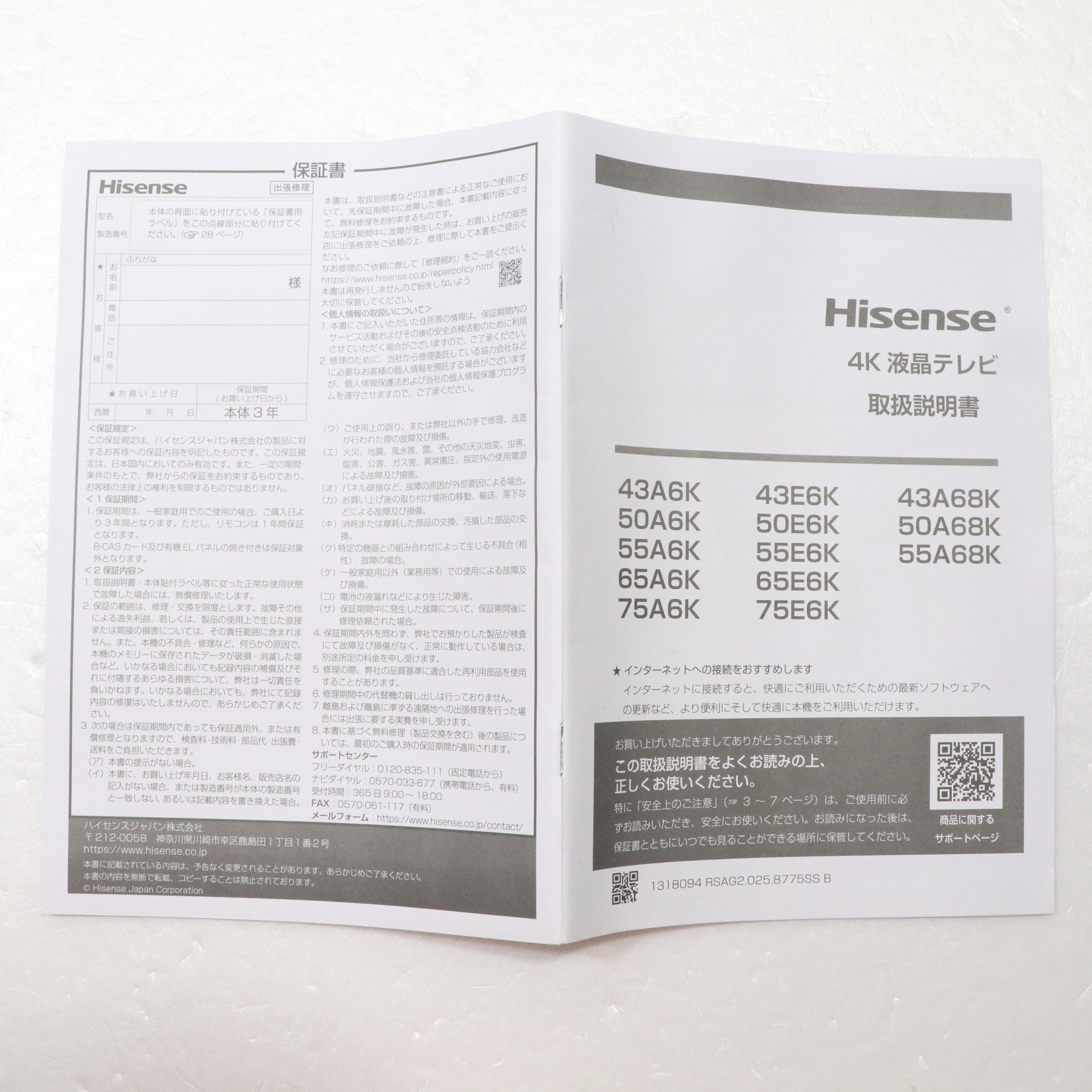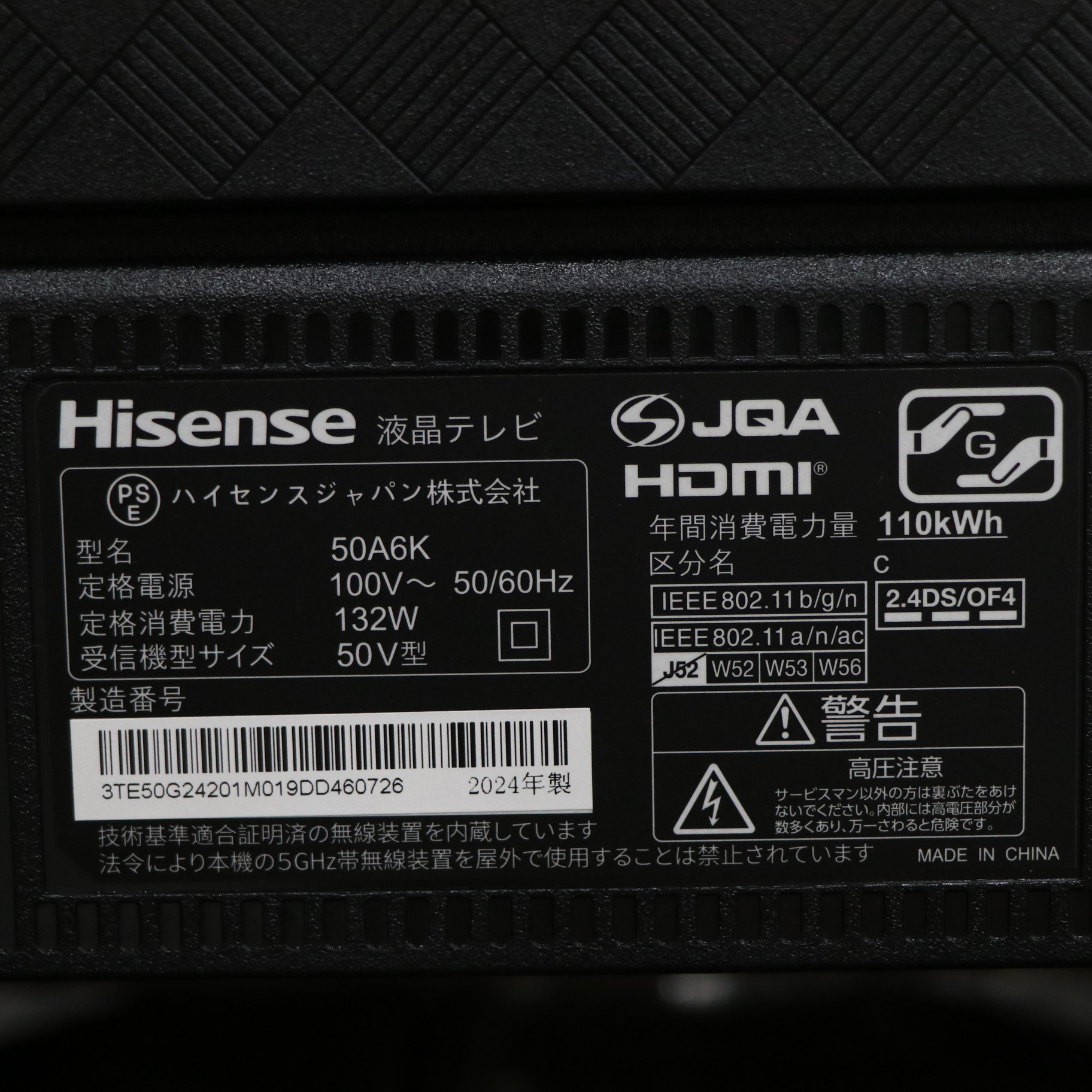 〔展示品〕 液晶テレビ 50A6K [50V型 /Bluetooth対応 /4K対応 /BS・CS 4Kチューナー内蔵 /YouTube対応]
