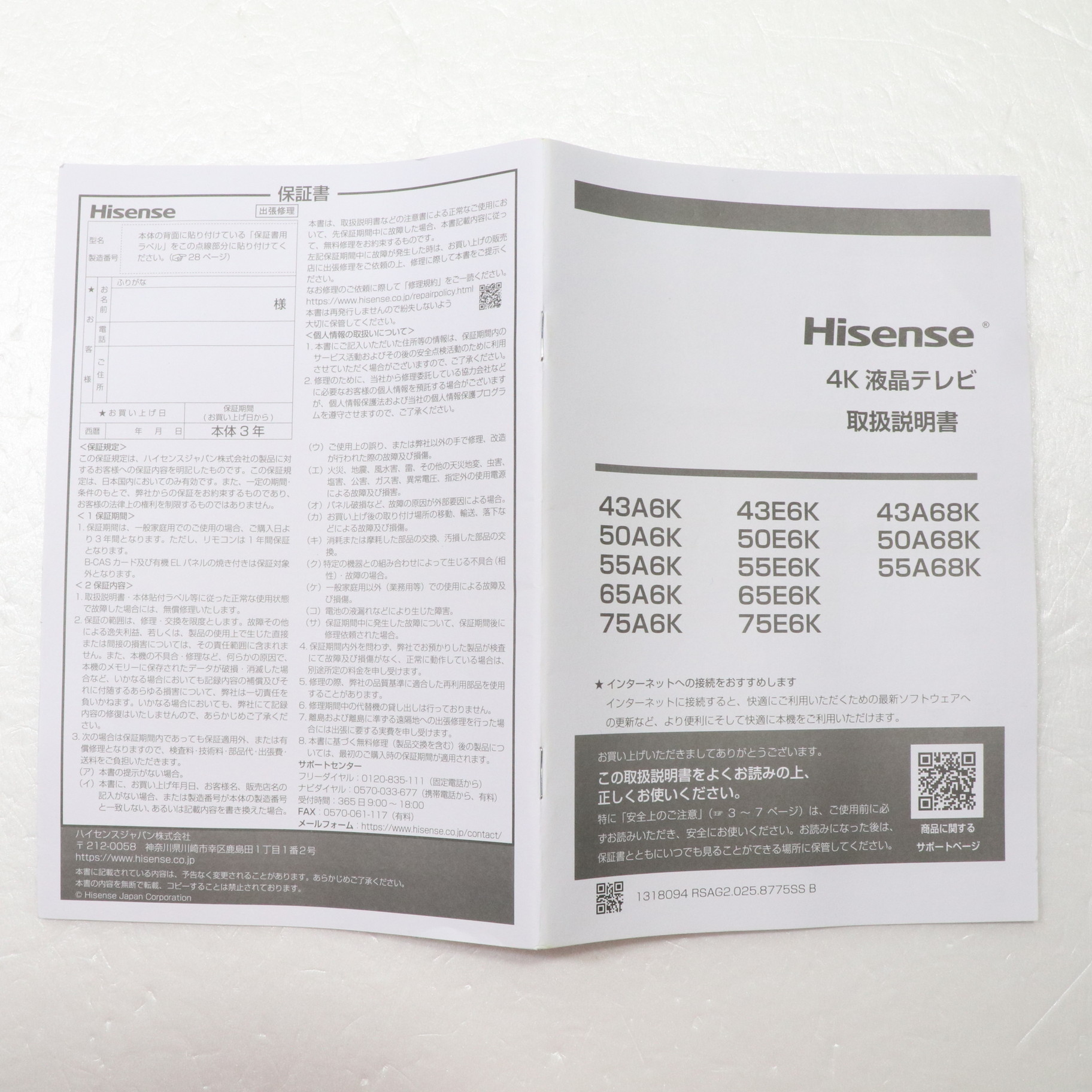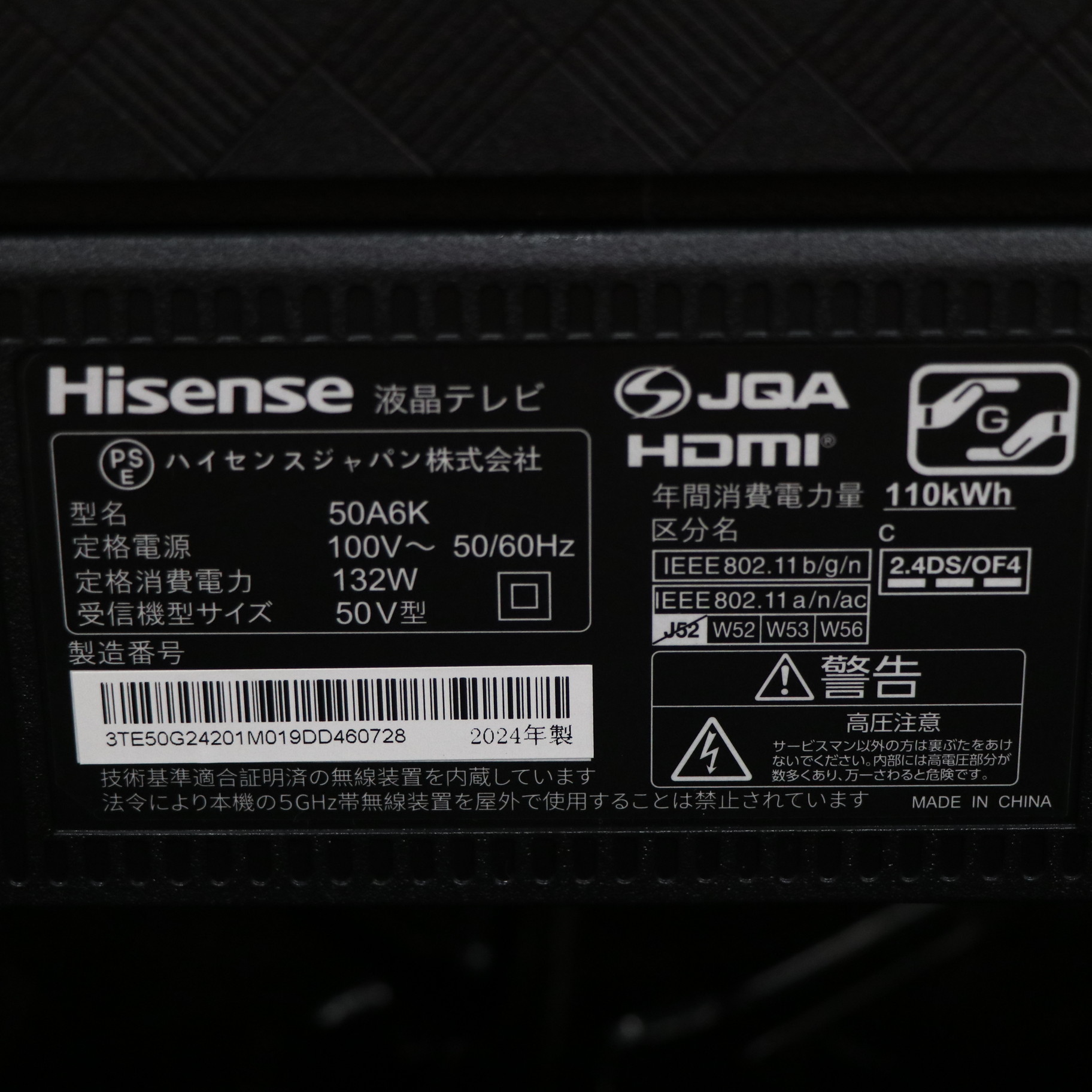 〔展示品〕 液晶テレビ 50A6K [50V型 /Bluetooth対応 /4K対応 /BS・CS 4Kチューナー内蔵 /YouTube対応]