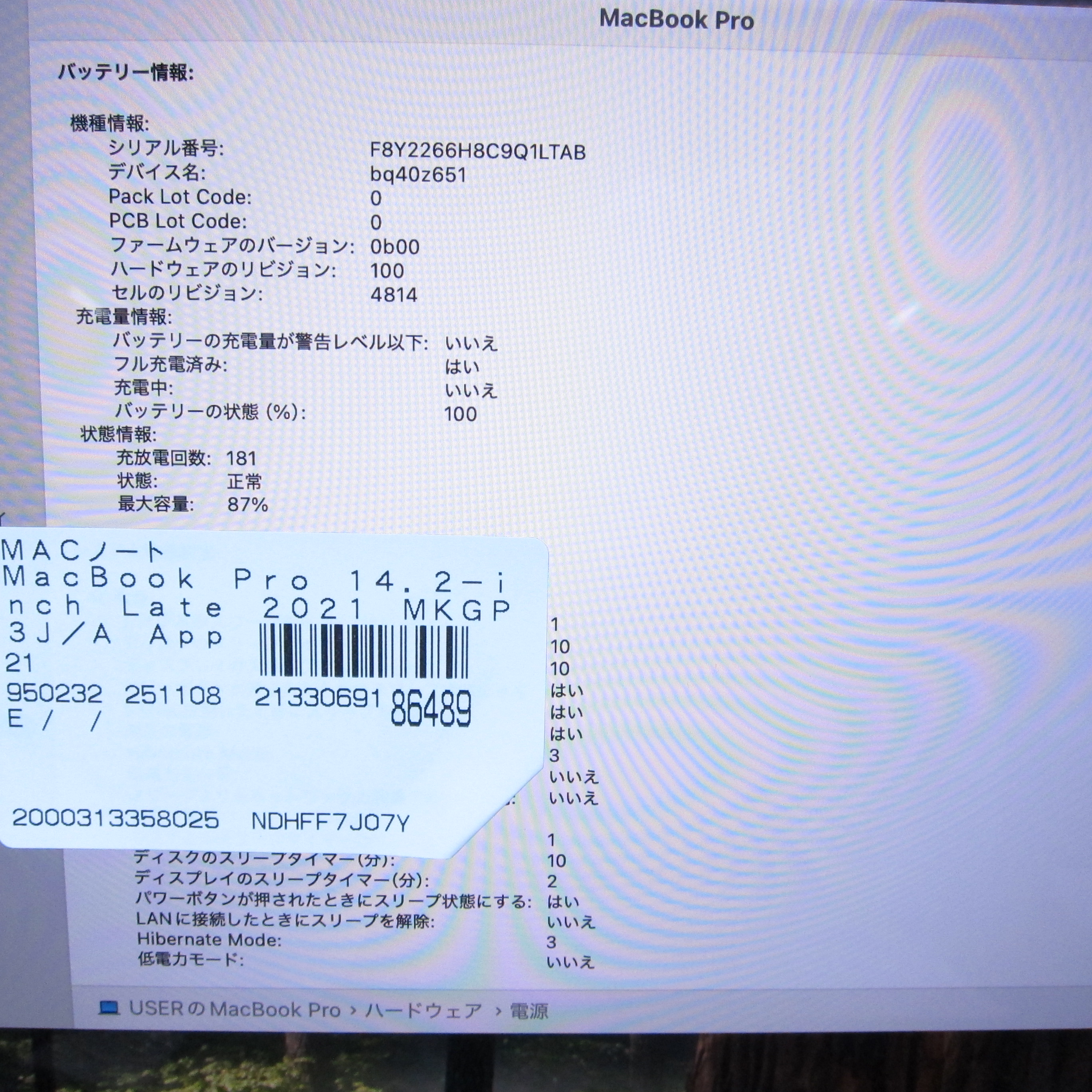 〔中古品〕 MacBook Pro 14.2-inch Late-2021 MKGP3J/A Apple M1 Max 10コアCPU_24コアGPU 64GB SSD1TB スペースグレイ 〔15.7 Sequoia〕 [グラフィック:オンボード/USキーボード]