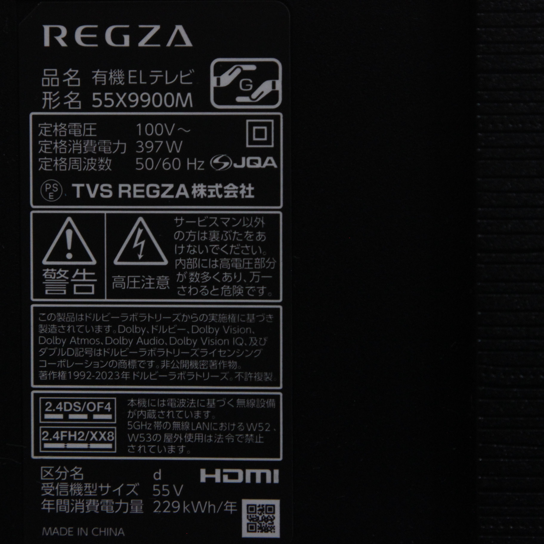 〔展示品〕 有機ELテレビ REGZA(レグザ) 55X9900M [55V型 /Bluetooth対応 /4K対応 /BS・CS 4Kチューナー内蔵 /YouTube対応]