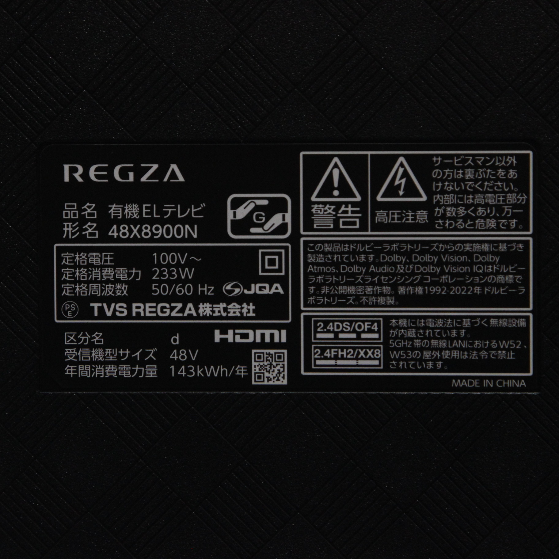 〔展示品〕 有機ELテレビ REGZA(レグザ) 48X8900N [48V型 /Bluetooth対応 /4K対応 /BS・CS 4Kチューナー内蔵 /YouTube対応]