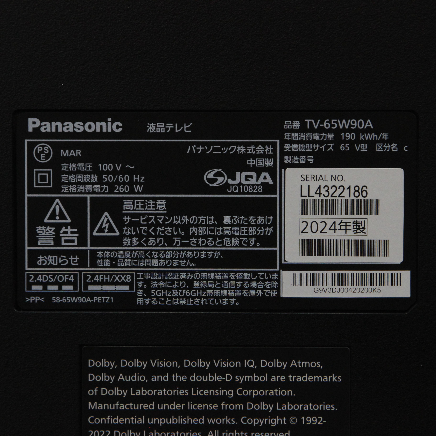 〔展示品〕 液晶テレビ VIERA(ビエラ) TV-65W90A [65V型 /Bluetooth対応 /4K対応 /YouTube対応]