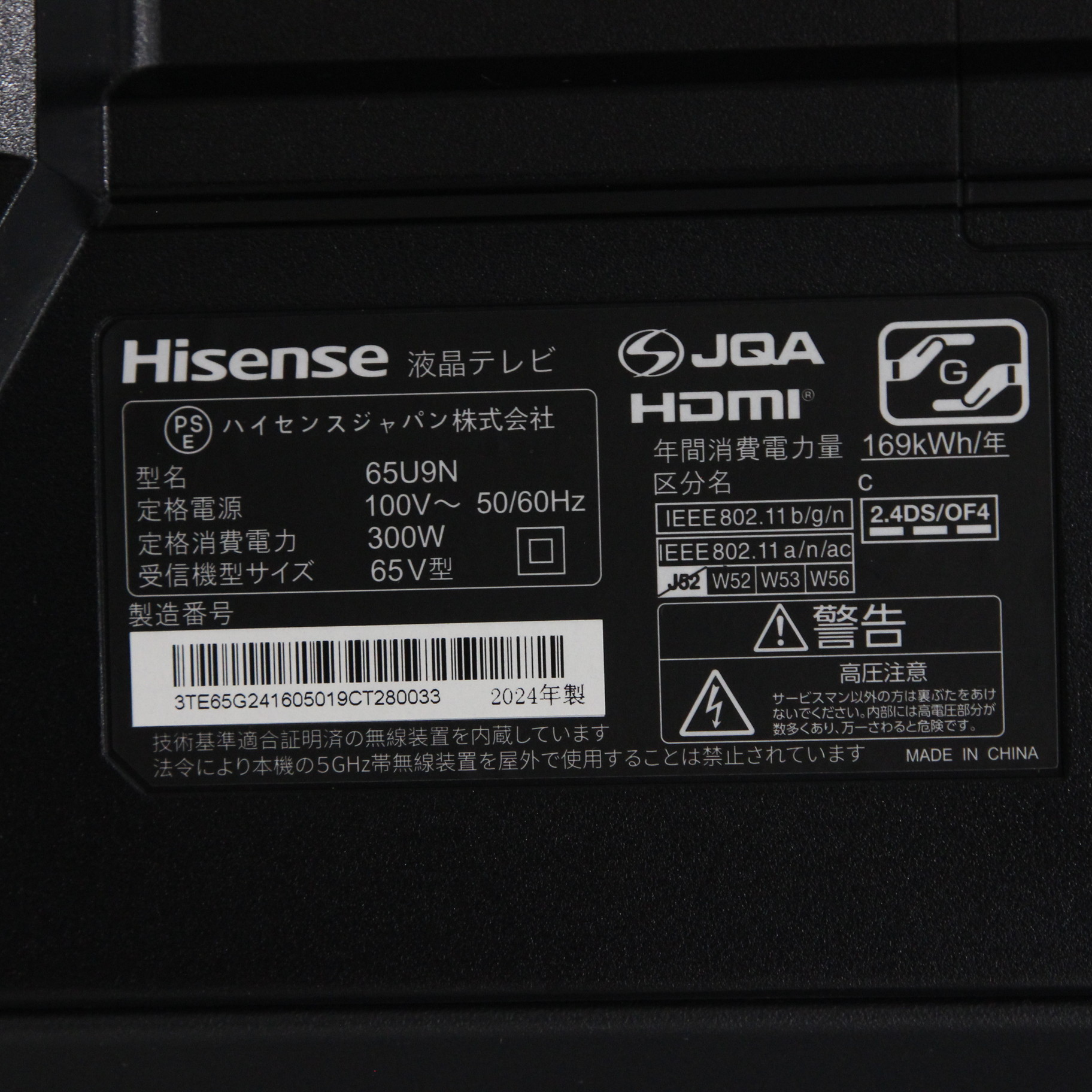 〔展示品〕 液晶テレビ 65U9N [65V型 /Bluetooth対応 /4K対応 /BS・CS 4Kチューナー内蔵 /YouTube対応]