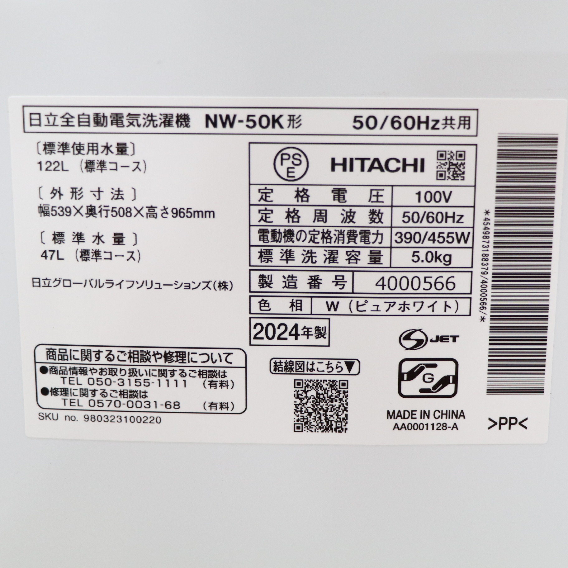 〔展示品〕 全自動洗濯機 2ステップウォッシュ ピュアホワイト NW-50K-W [洗濯5.0kg /簡易乾燥(送風機能) /上開き]