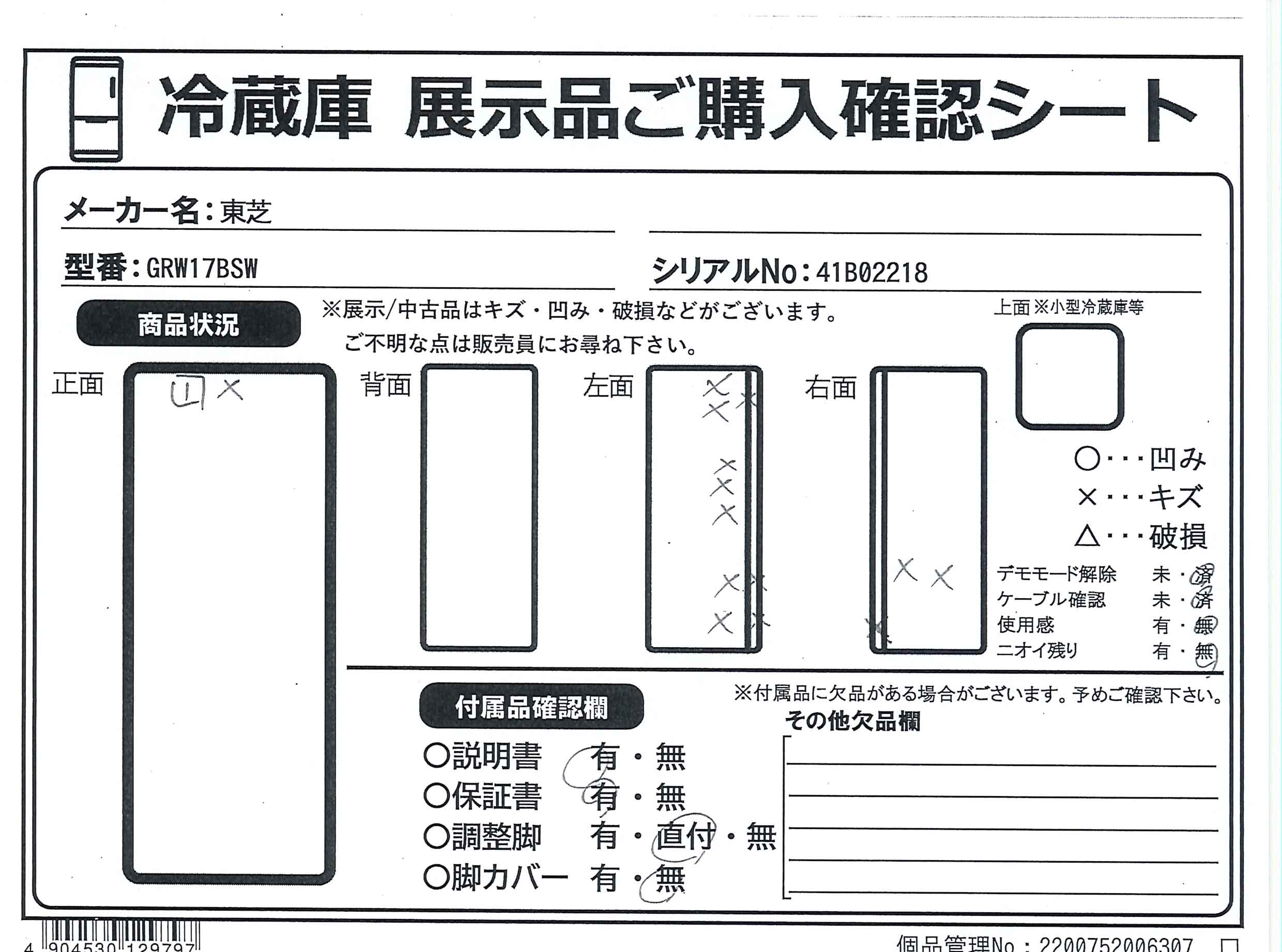 中古商品ランクについて 付属品・商品状態について 〔付属品〕説明書、調節脚、仕切れるチューブスタンド、製氷皿、蒸発皿