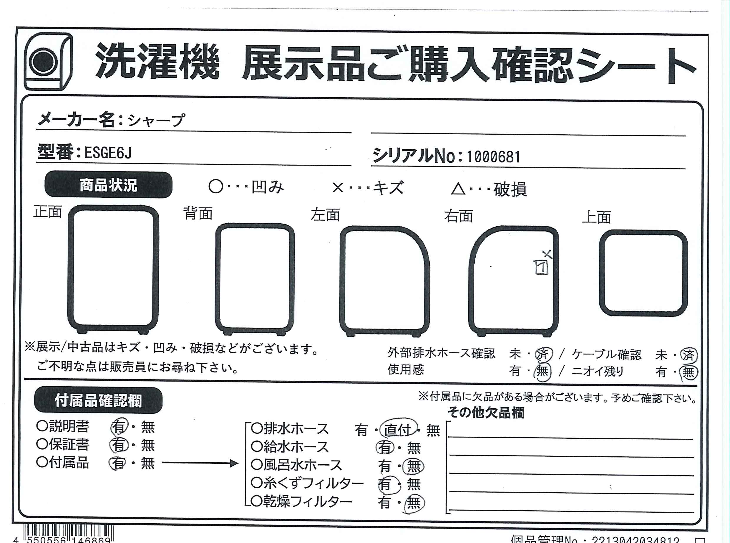 中古商品ランクについて 付属品・商品状態について 〔付属品〕取扱説明書、据付チラシ、底カバー取付説明書、底カバー、底カバー取付ネジ×6、給水ホース、水栓つぎて