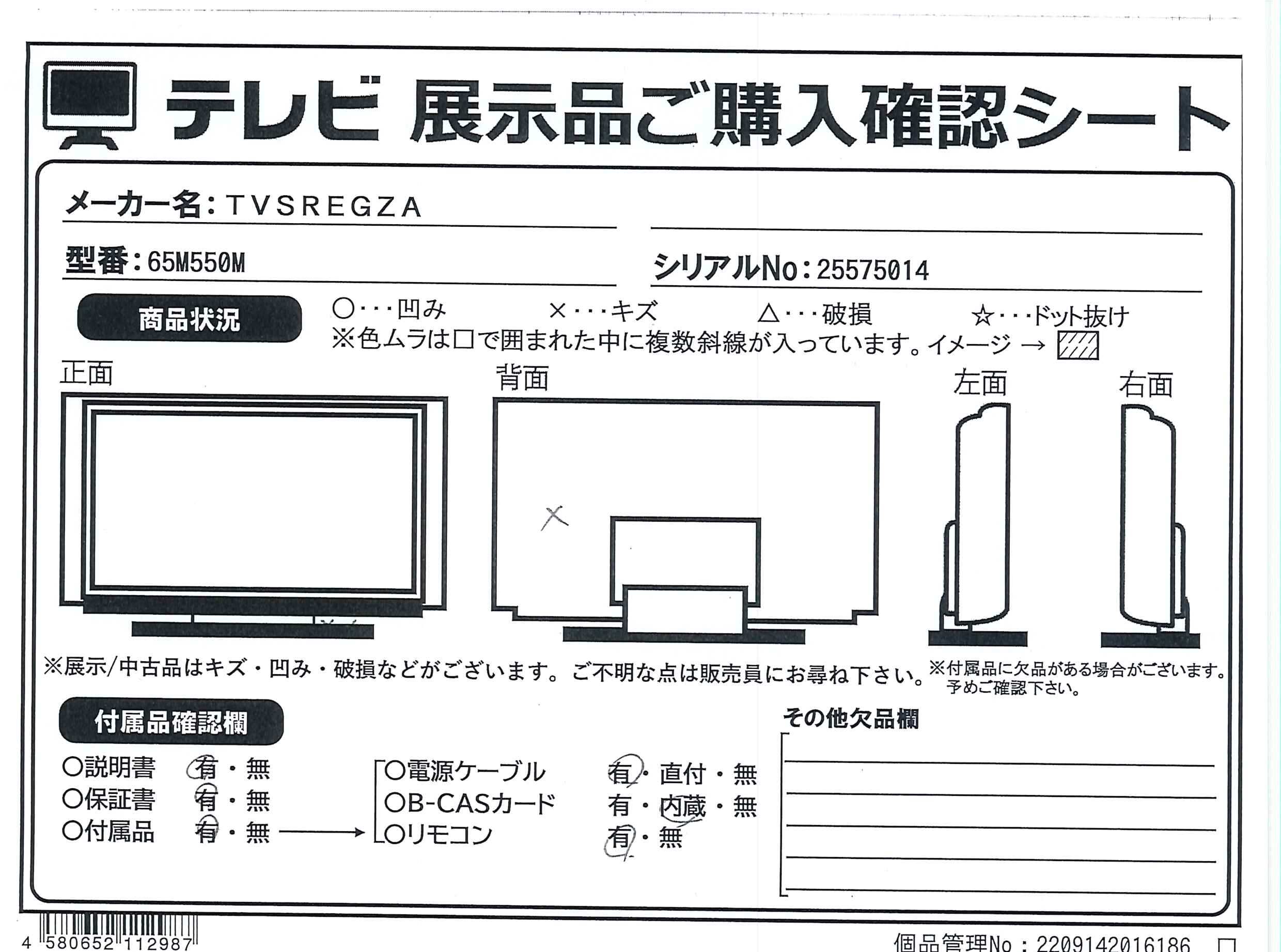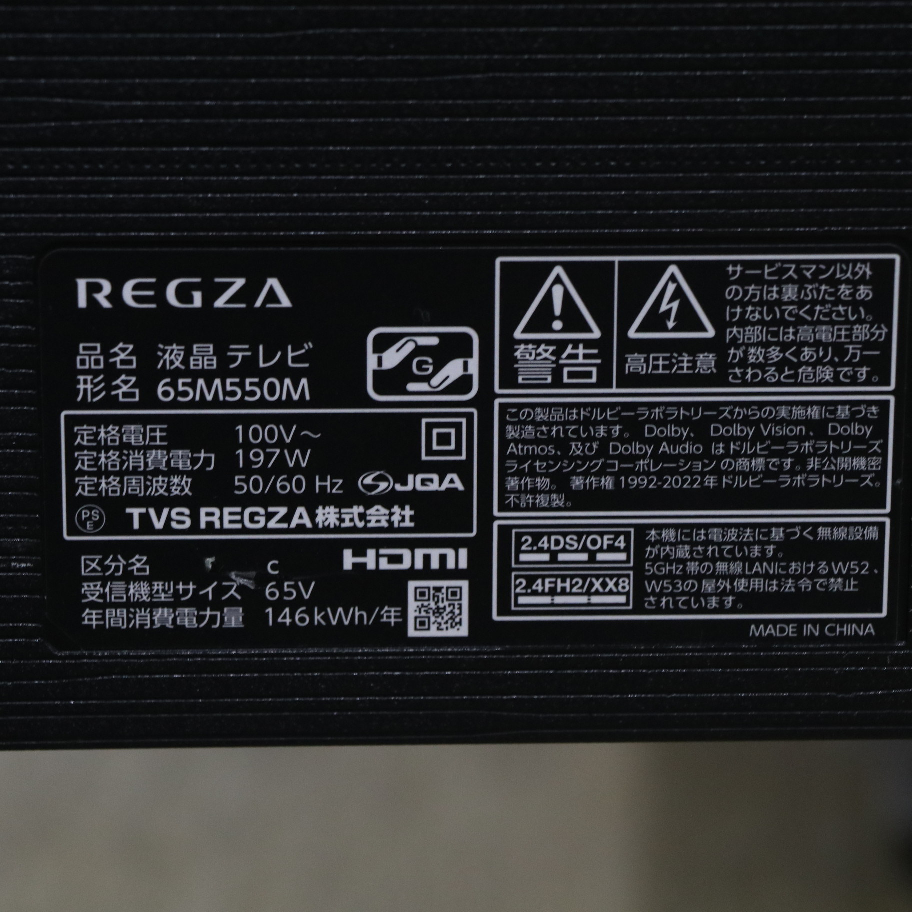 〔展示品〕 液晶テレビ REGZA(レグザ) 65M550M [65V型 /Bluetooth対応 /4K対応 /BS・CS 4Kチューナー内蔵 /YouTube対応]